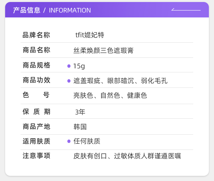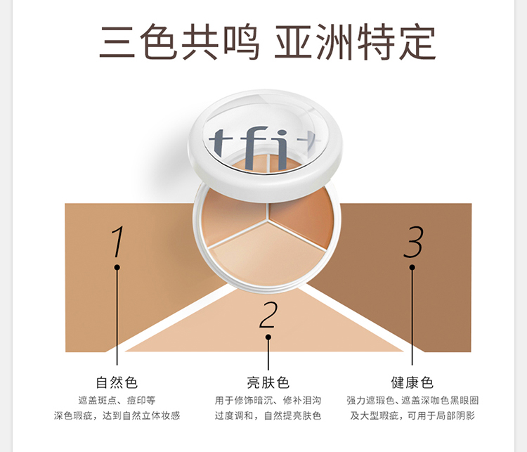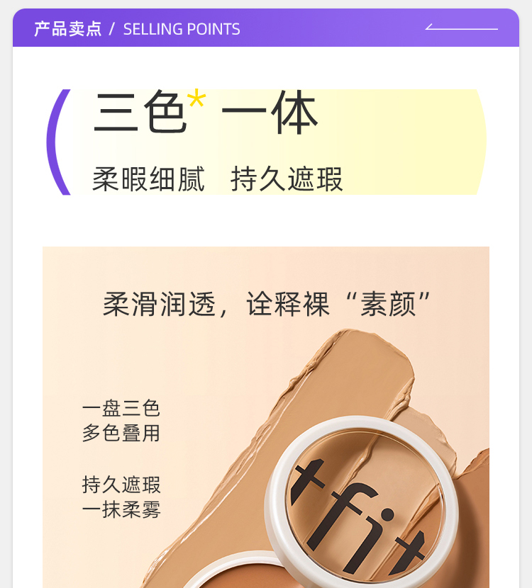 商品介绍:TFIT三色遮瑕膏遮暇盘+遮瑕刷