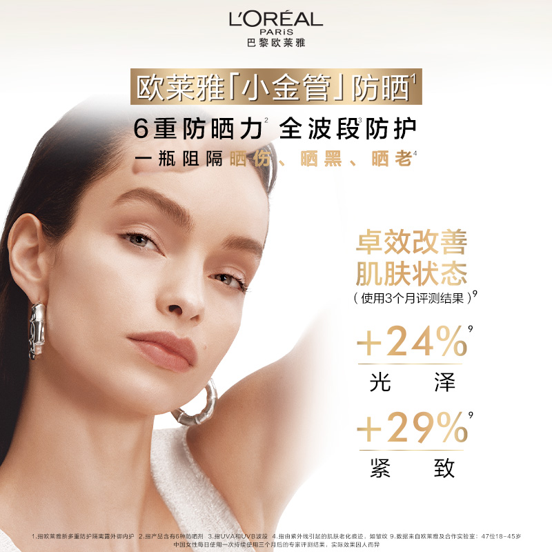 商品介绍:欧莱雅小金管防晒霜30ml清爽面部隔离霜
