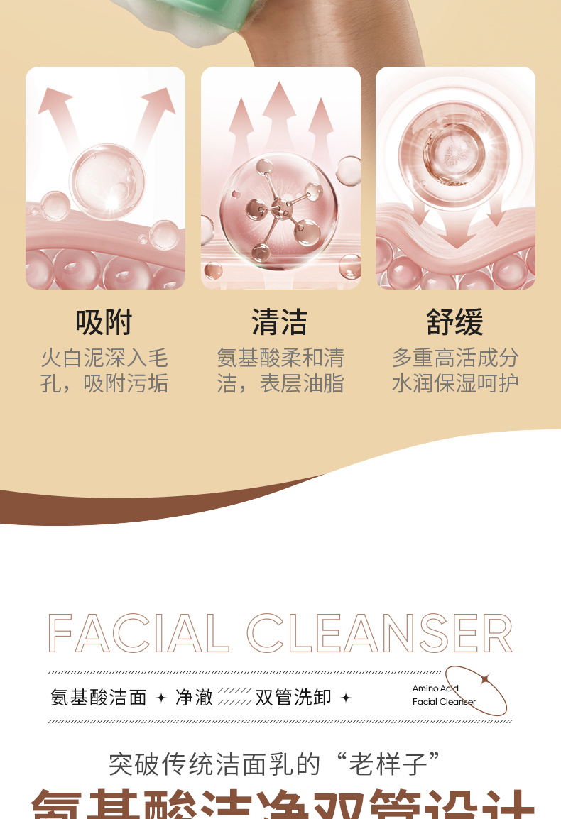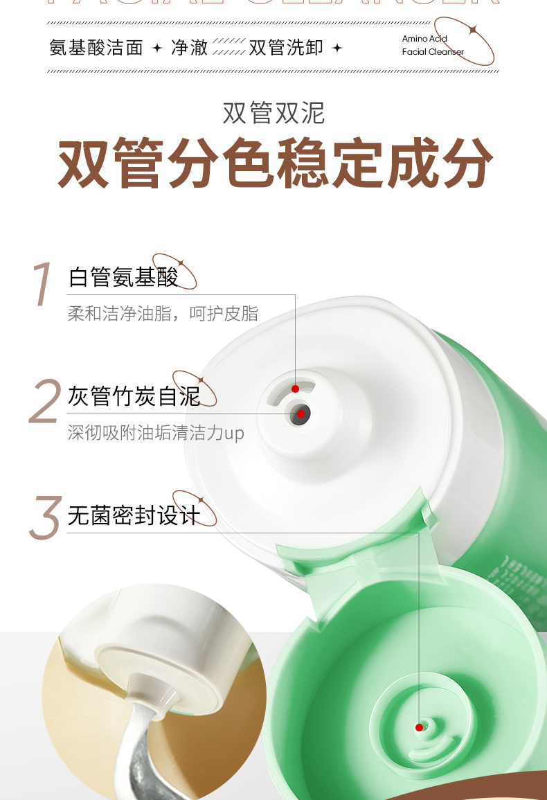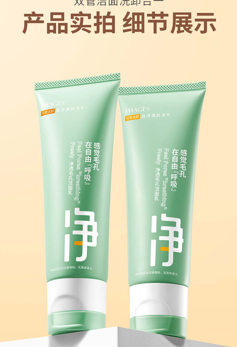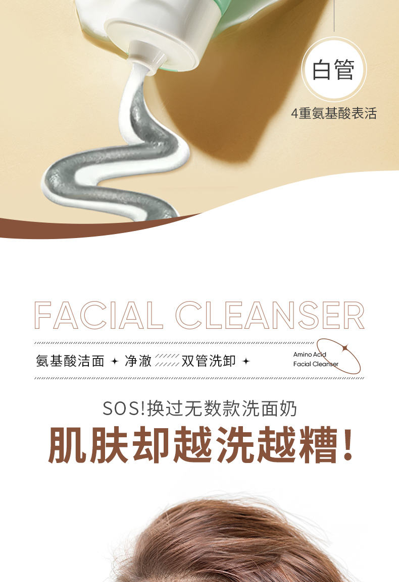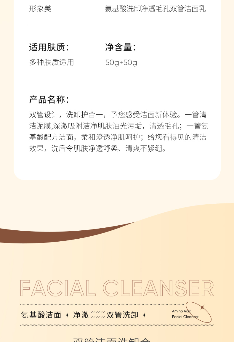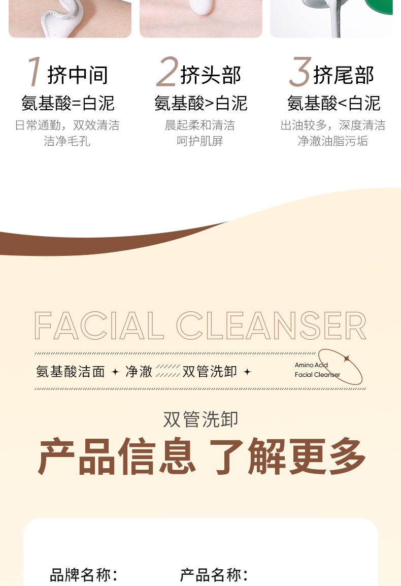 商品名称:氨基酸洗卸净透毛孔双管洁面乳清爽不粘腻