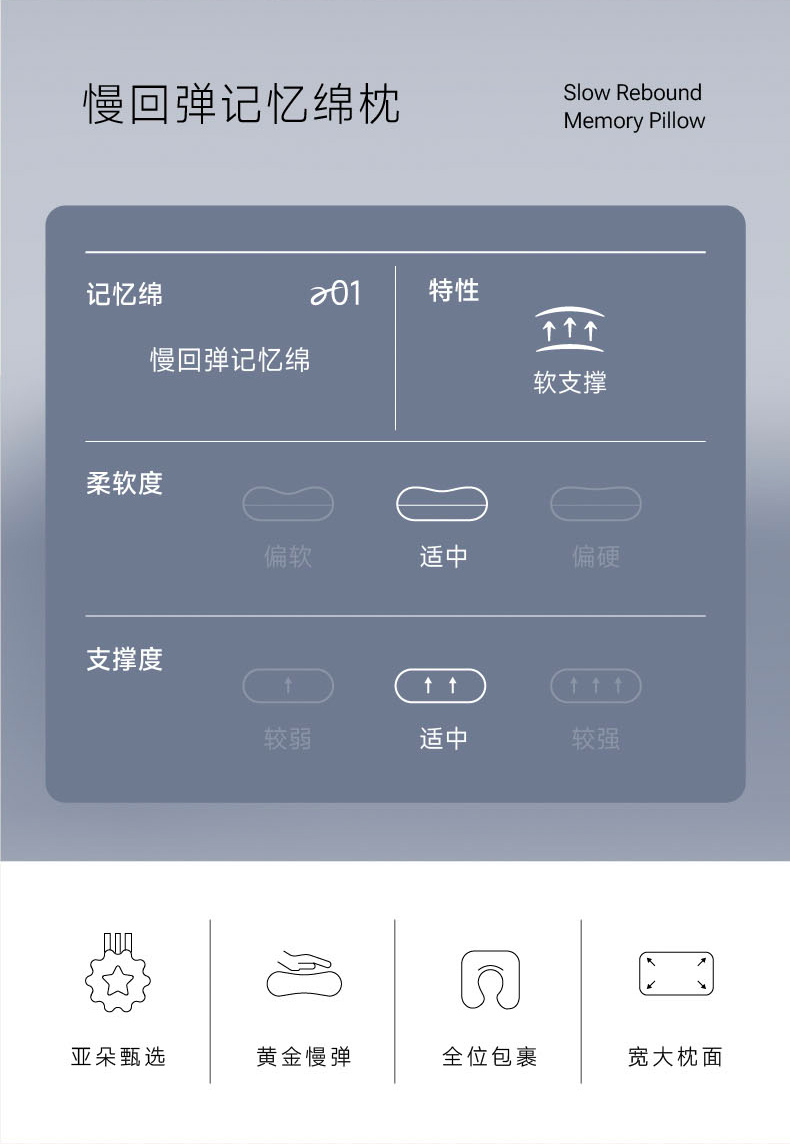 商品简介:【官方立减!】亚朵记忆棉枕头,柔软舒适,超强回弹力,细腻有质感!有助于改善睡眠困扰,高密度记忆棉,抗压性强,更好承托颈椎!!【升级版运费险】