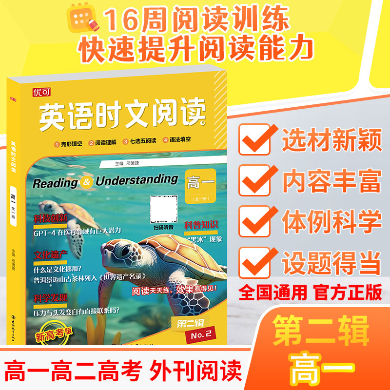 商品名称:【新华文轩】优可英语时文阅读第一二辑高中一二三年级英语完型填空与阅读理解组合专项训练高考英语活页时文阅读复习阅读理解题型