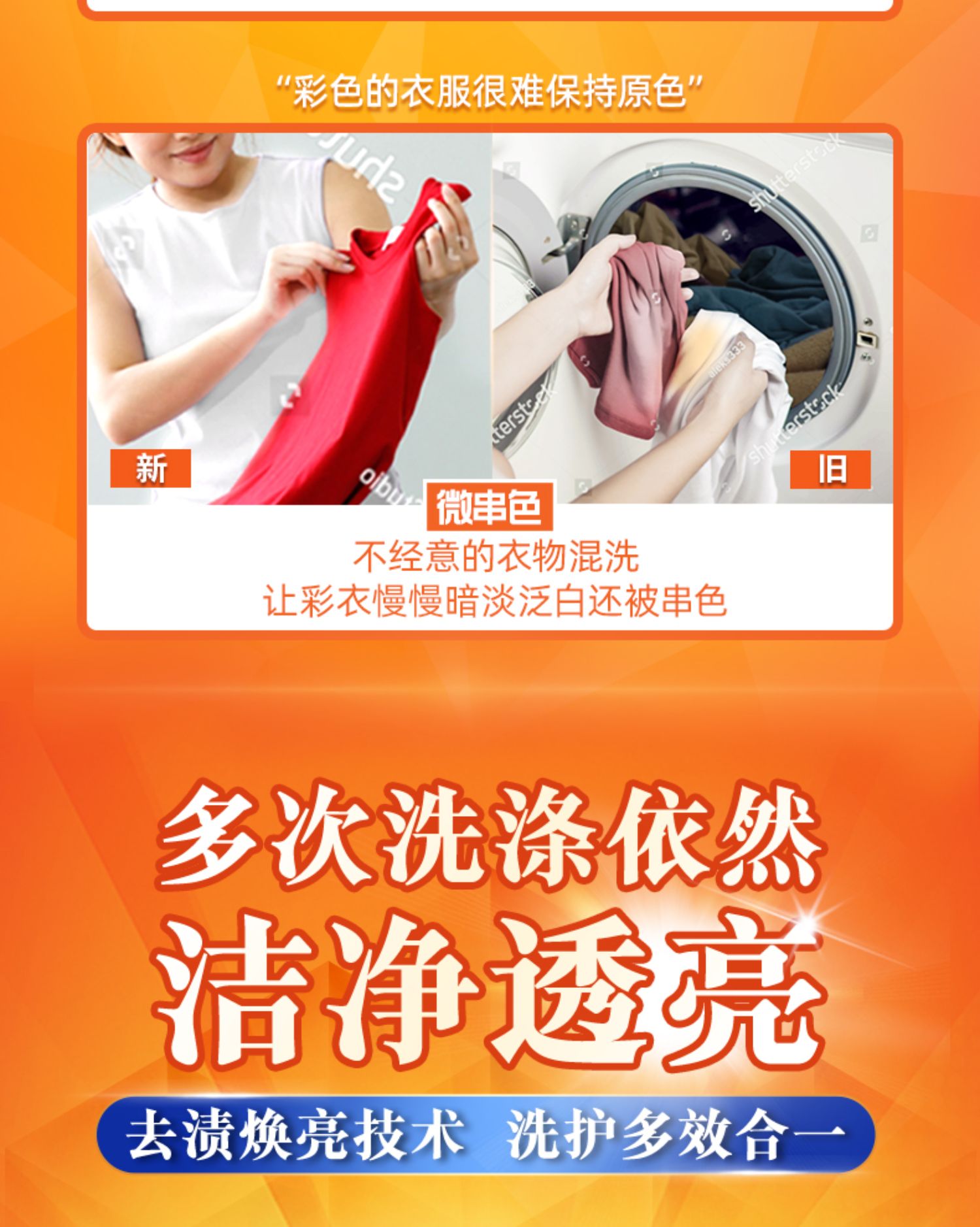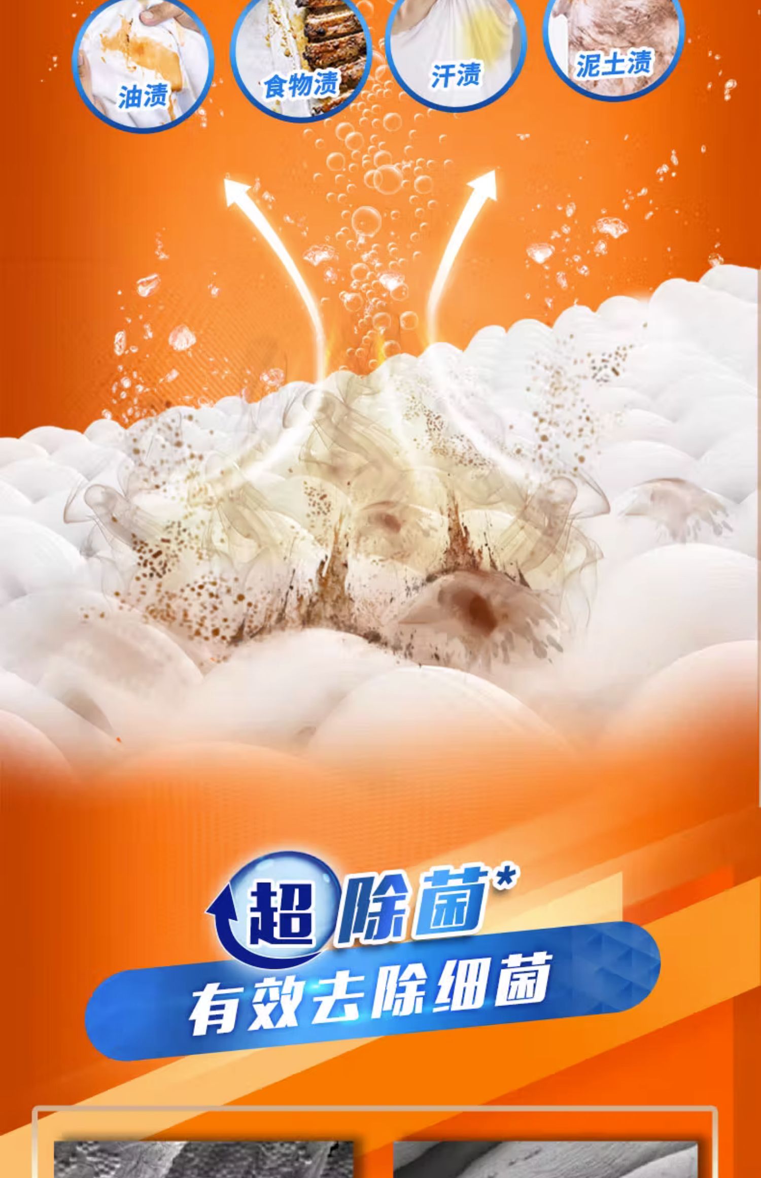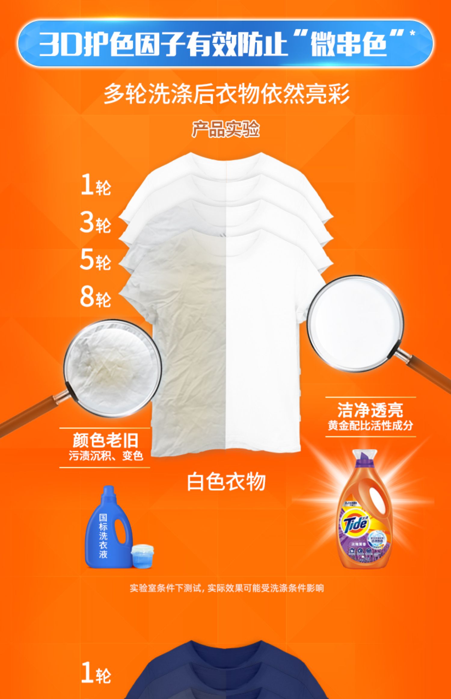 商品简介:全球首创微粒净专利,添加活性洗涤因子,深入衣物纤维,1盖大于3盖国标洁净力,有效清洁细菌污渍,温和不伤手,不含可迁移性荧光增白剂,护色留香持久清新