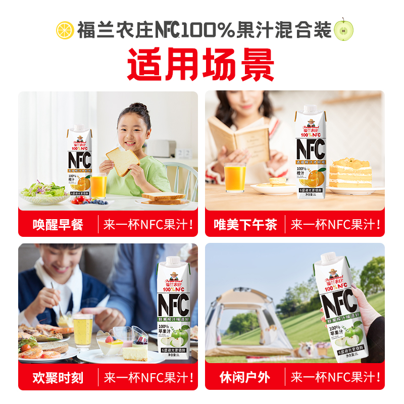 商品介绍:【88vip37.4】福兰农庄NFC果汁1L*4瓶礼盒