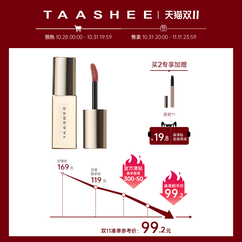 商品介绍:【双11抢先购】TAASHEE她叙裸彩柔雾唇釉