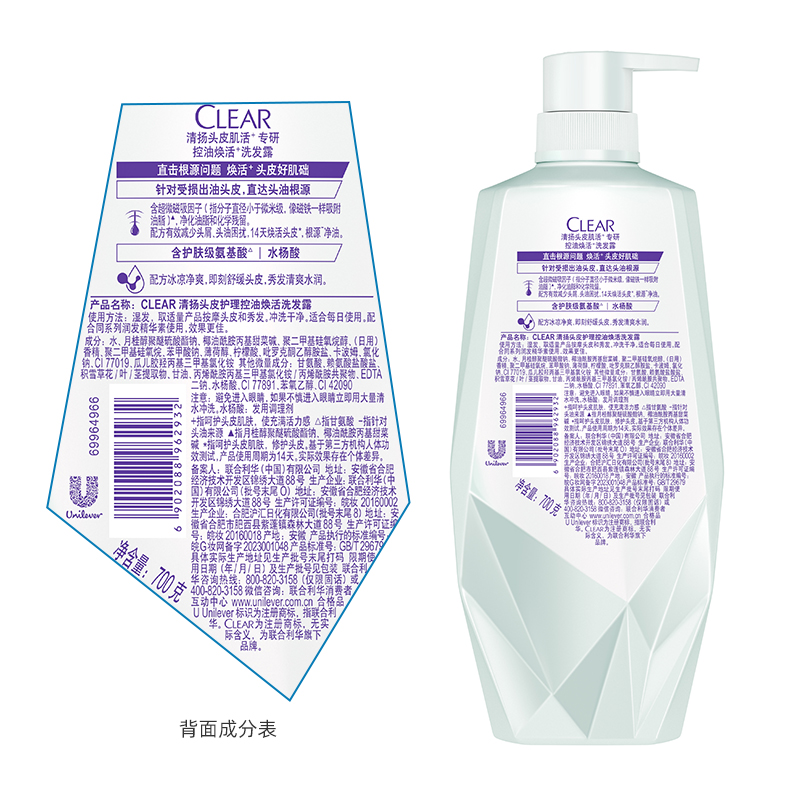 商品介绍:清扬头皮护理控油焕活洗发水700G*2+300g
