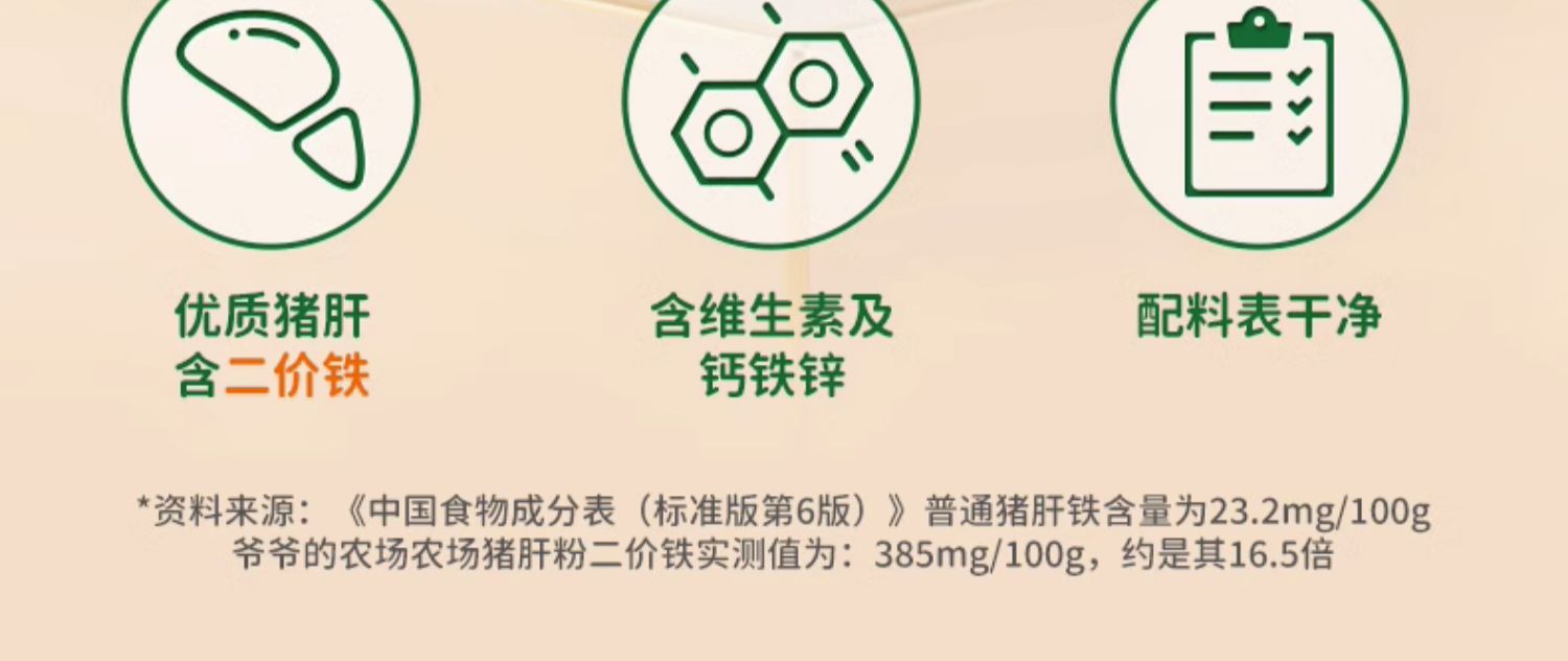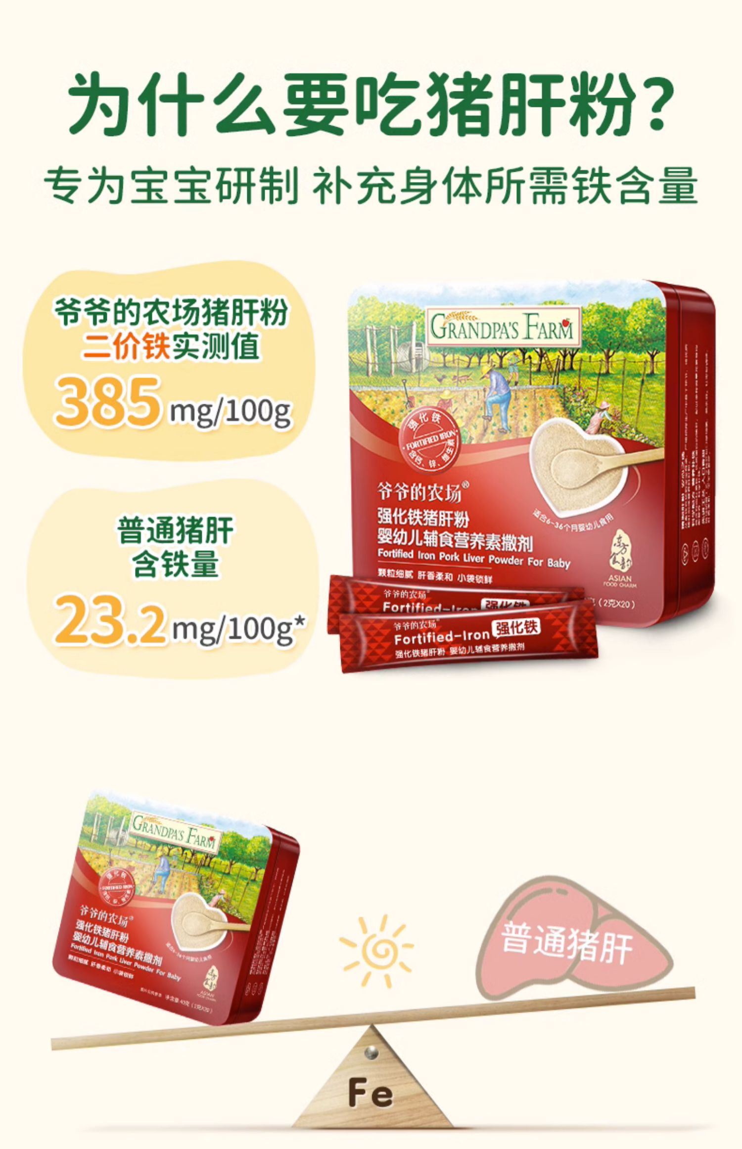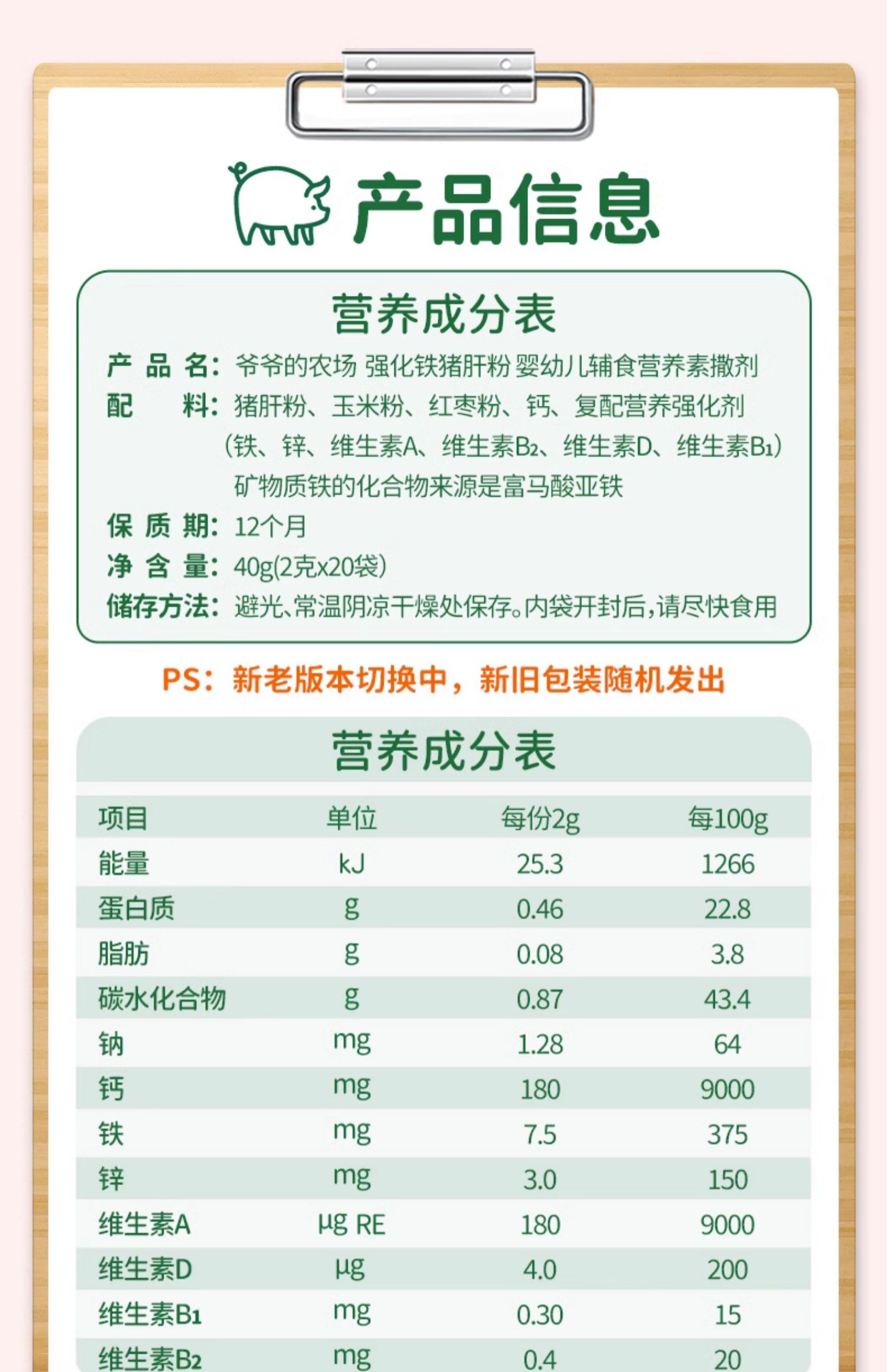 商品名称:爷爷的农场猪肝粉婴幼儿食用辅食宝宝补铁强化添加营养剂独立小包