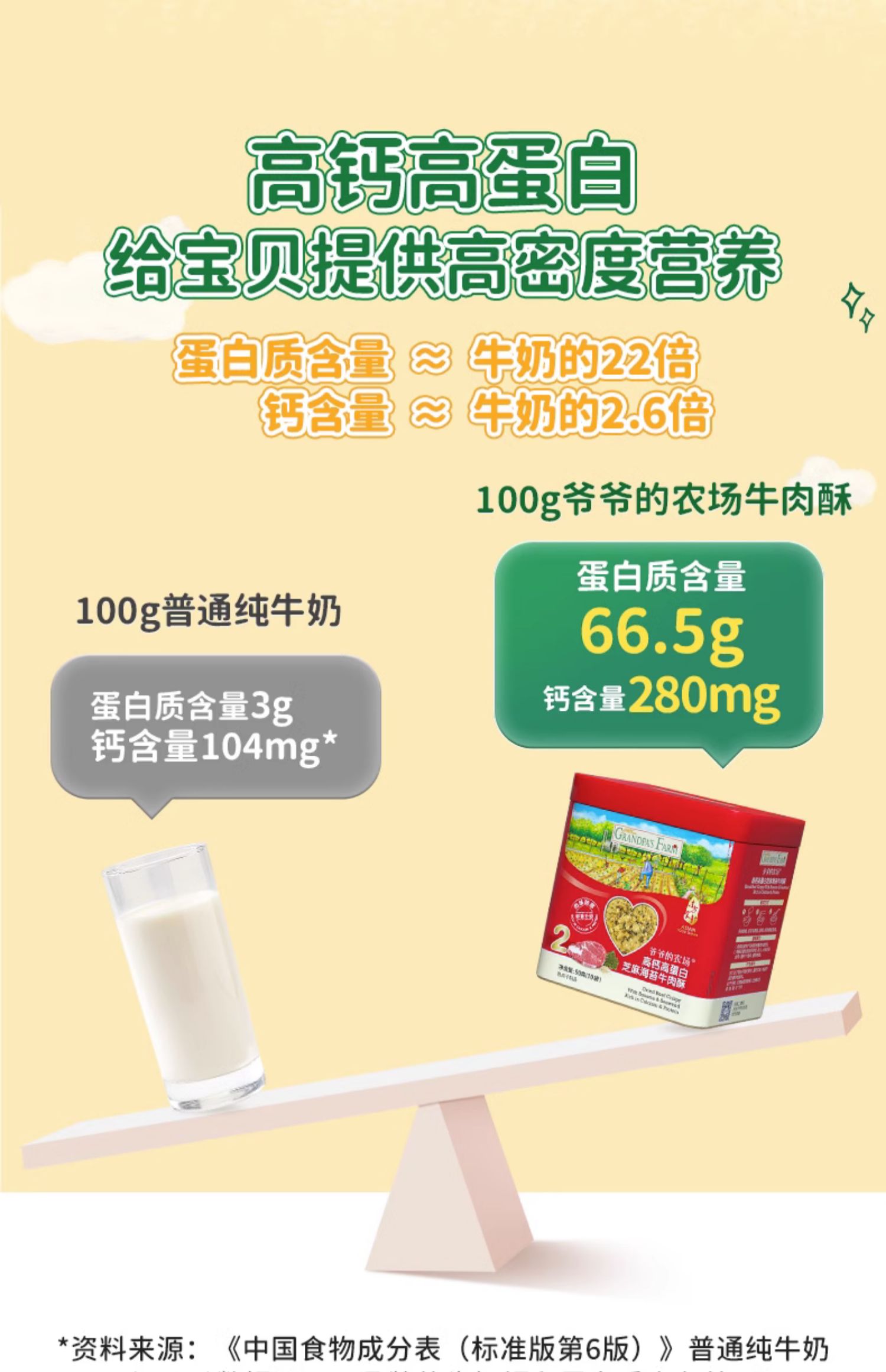 商品简介:【拍二凑单券后81.5!!赠果泥一袋+口水巾】爷爷的农场婴幼儿6个月营养猪肝粉剂,独立小包装,富含锌钙铁、维生素,营养均衡,腥味少还有点甜,妈妈优选的辅食营养补充品,让宝宝吃饭更香!
