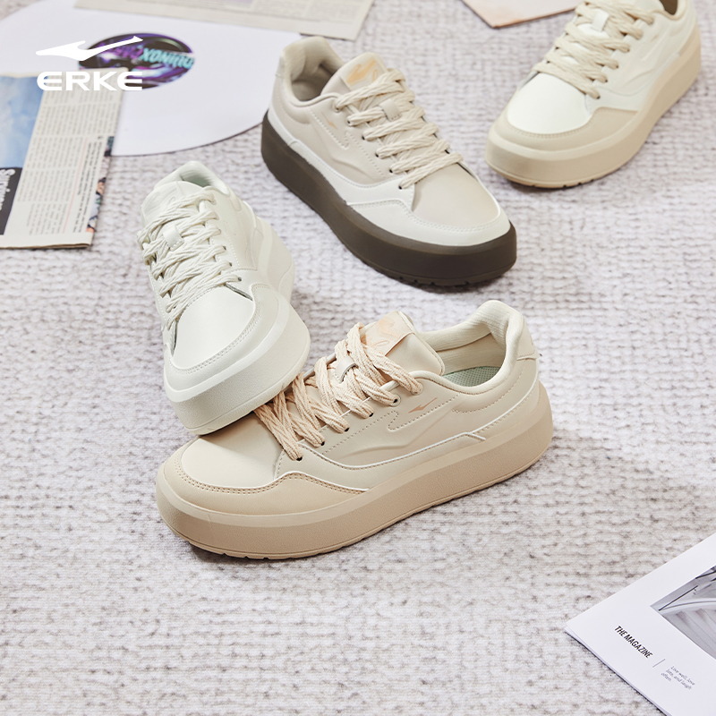 商品名称:元气2鸿星尔克女鞋厚底增高板鞋冬季新款休闲鞋棕色百搭运动鞋女