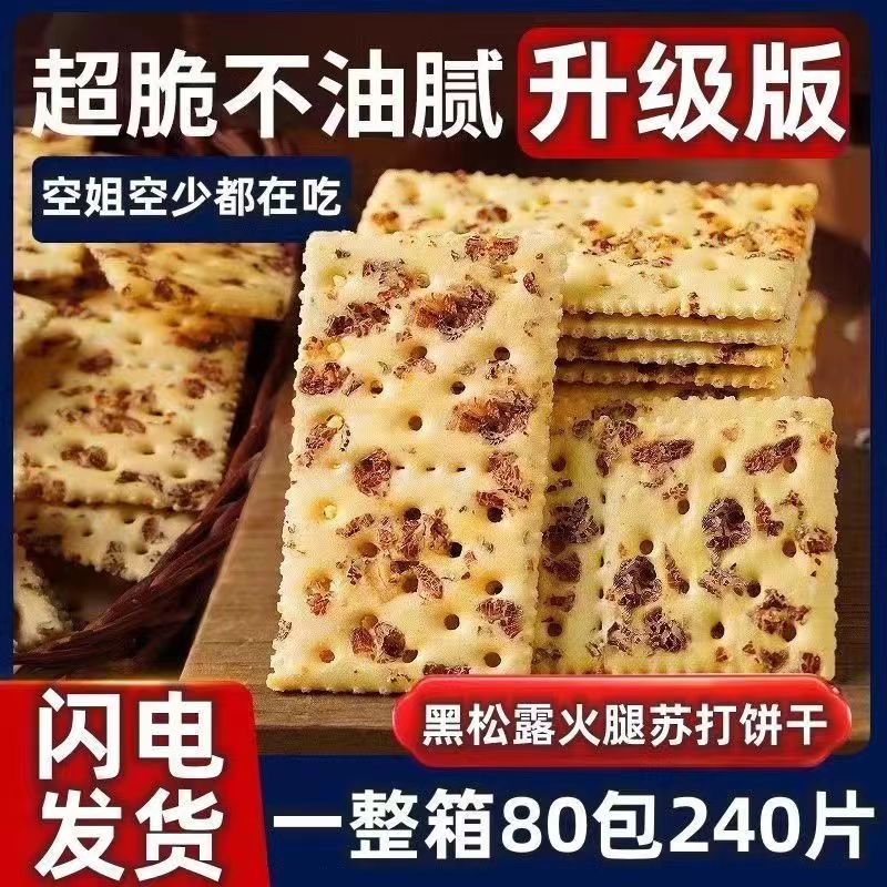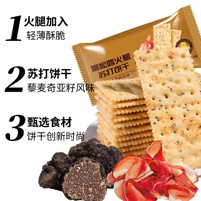 商品名称:【O反式脂肪酸】黑松露火腿苏打饼干薄脆解馋休闲零食品0添加蔗糖