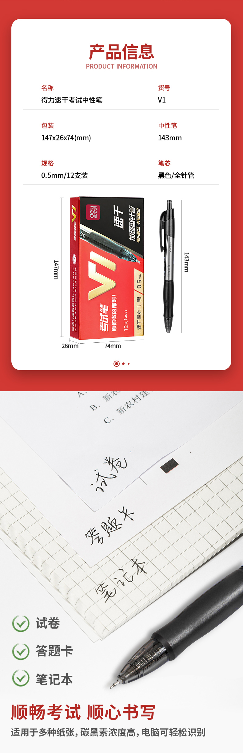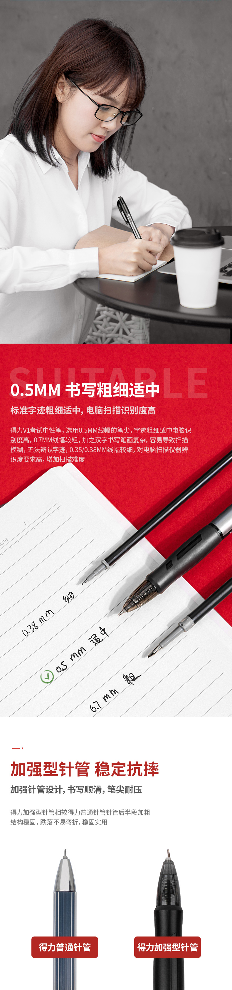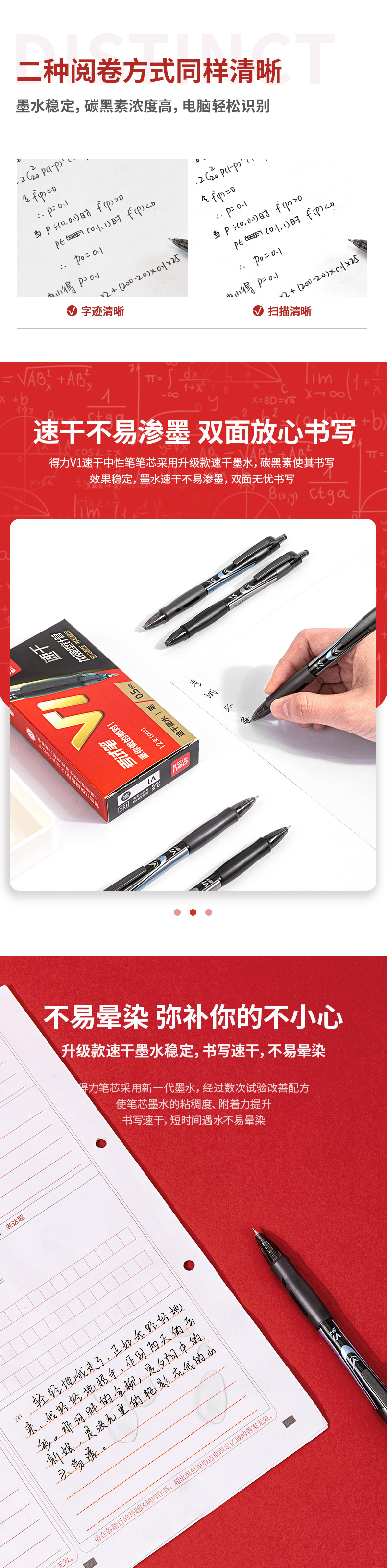 商品介绍:得力刷题笔按动式速干中性笔3支