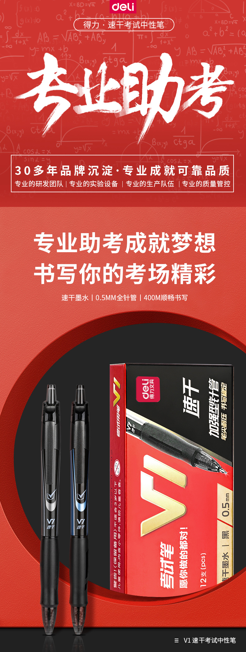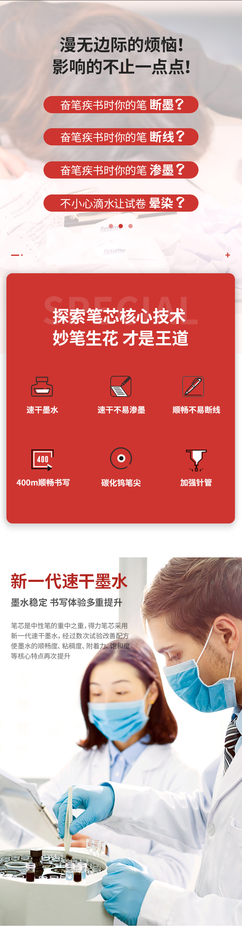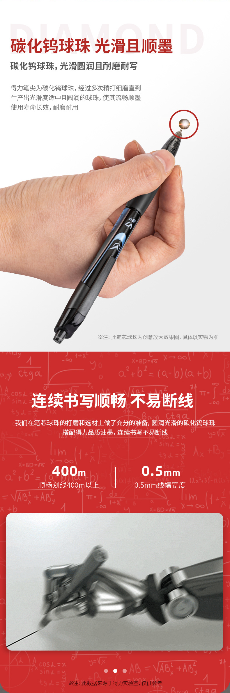 商品介绍:得力刷题笔按动式速干中性笔3支
