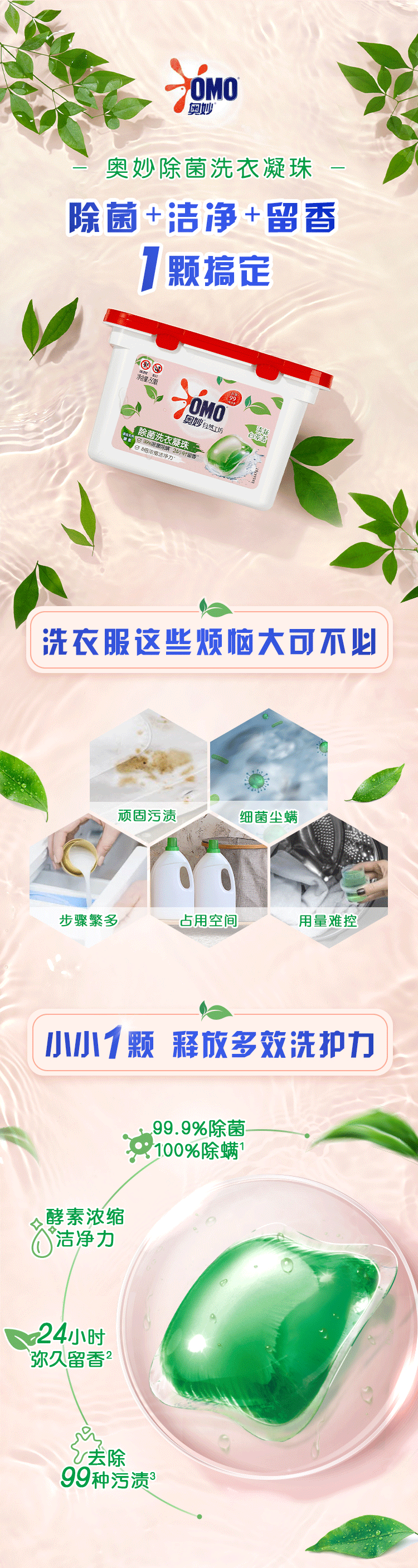商品介绍:奥妙白茶除菌洗衣凝珠400G*2
