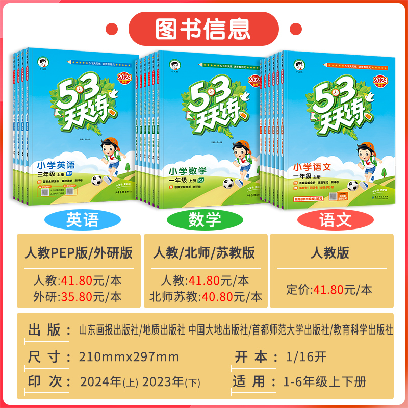 商品名称:2024秋新版春53天天练一二年级三四年级五六年级上下册语文数学英语人教苏教北师小学五三天天练小儿郎5.3天天练5+3同步训练课本书