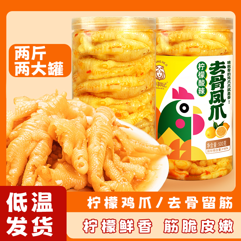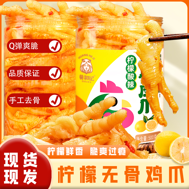 商品名称:黄和纪柠檬酸辣无骨鸡爪1000g罐装去骨凤爪网红小吃下酒脱骨零食