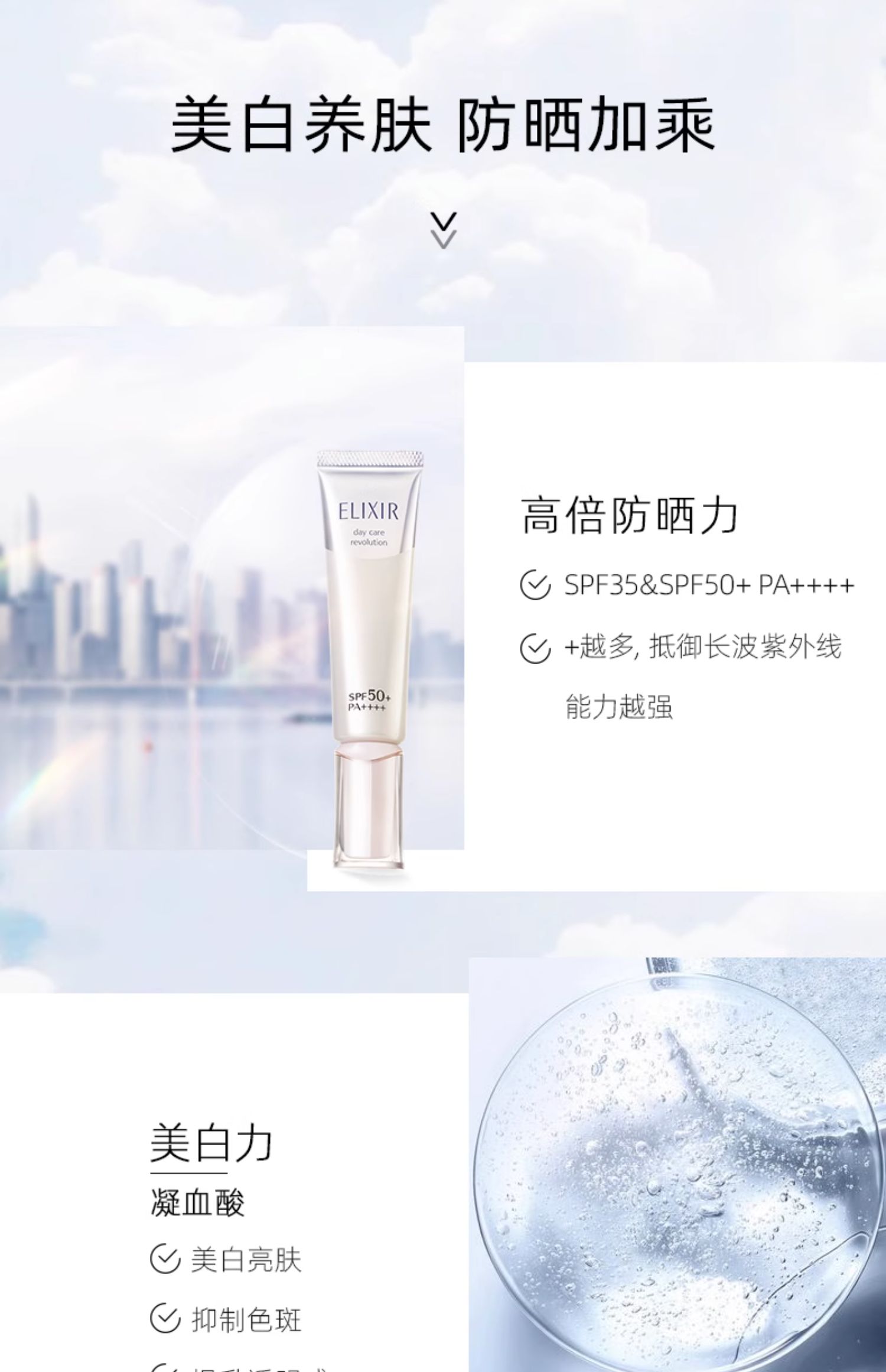 商品简介:【叠加跨店满减到手35ml仅213.3,赠小金管防晒5ml*7,入会赠弹润水乳18ml】美白+防晒双效特证,SPF50+,PA++++!高保湿防护,水润之间抵御紫外线,户外通勤都可以~