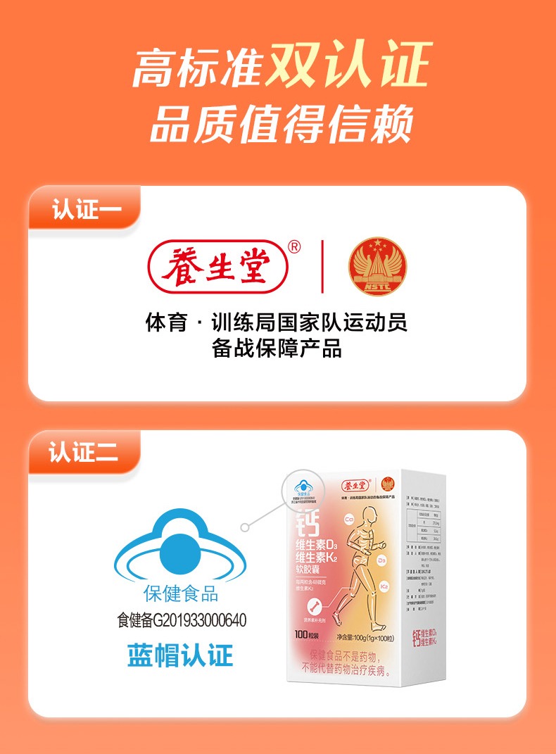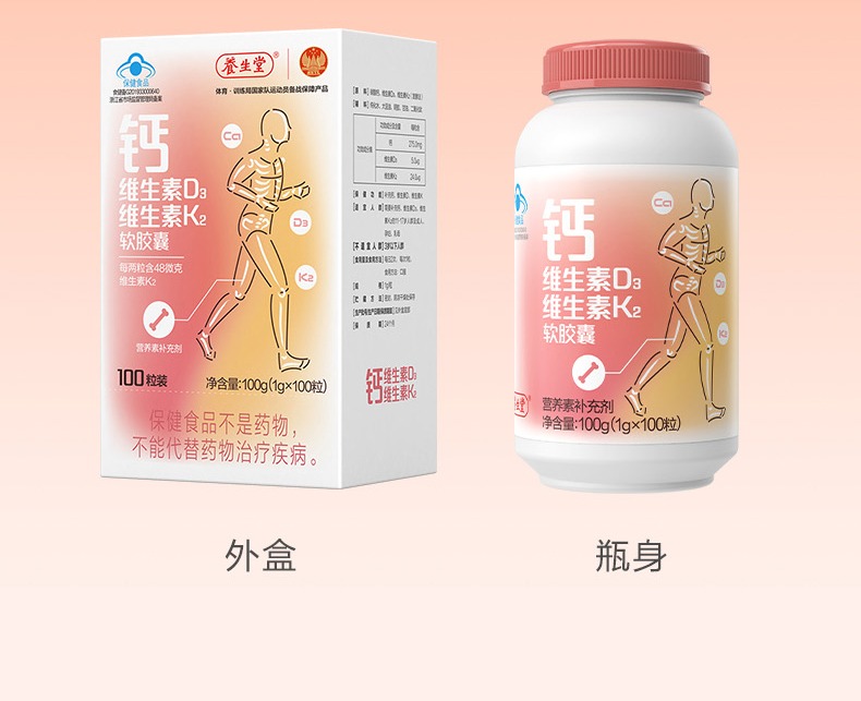 商品介绍:【养生堂】维生素D3K2钙片200片