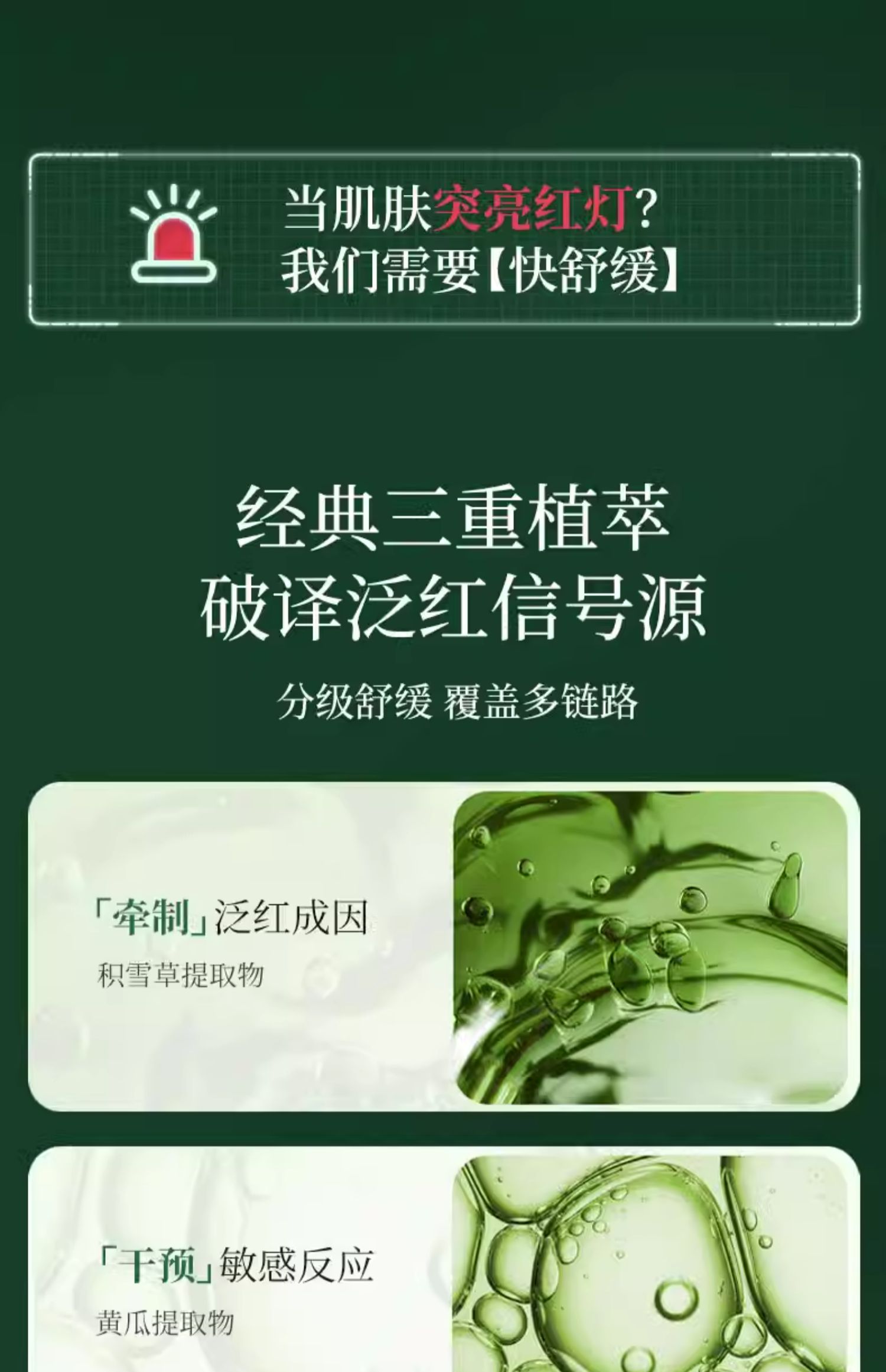 商品简介:【拍1发2,再送10ml,到手共110ml】5万+人真实好评,累计爆卖188万+瓶,经典三重植萃+双重明星成分,褪红淡痘印全都拿捏了!简直就是红脸灭火器!修护!舒缓!做的太牛了!真人实测效果看得见!!【退货运费险】