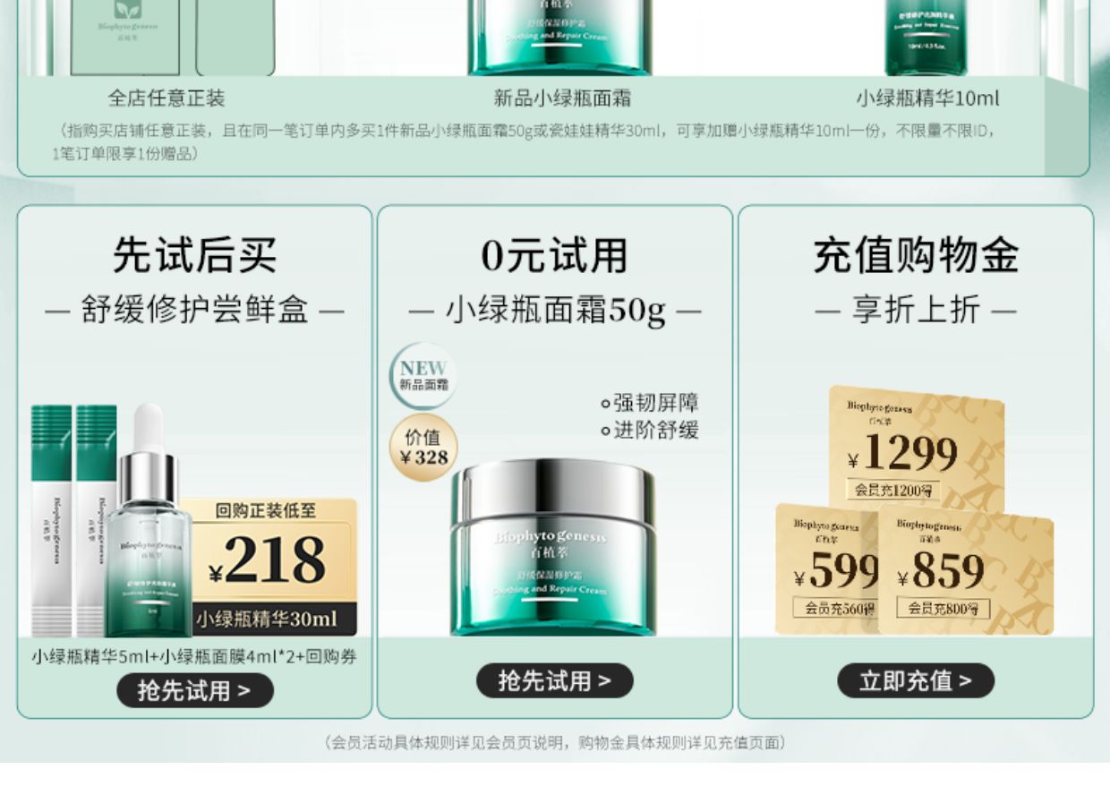商品名称:【双11立即抢购】百植萃小绿瓶精华2.0修护控油淡红保湿精华液