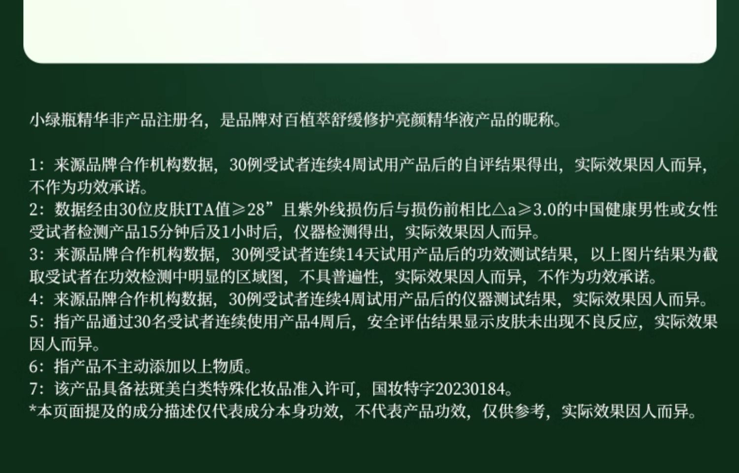 商品介绍:【真·翻贝】百植萃小绿瓶精华50ml