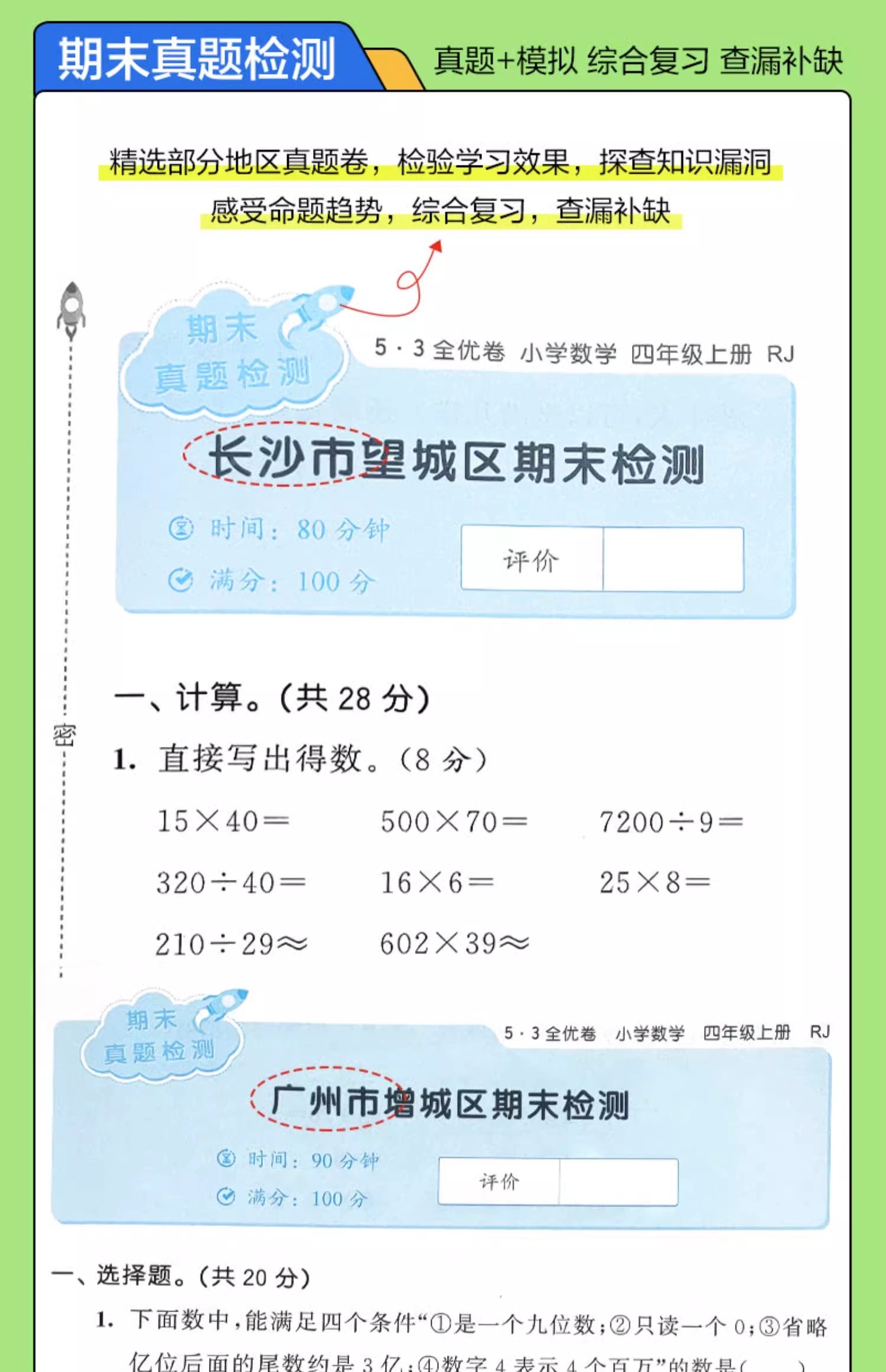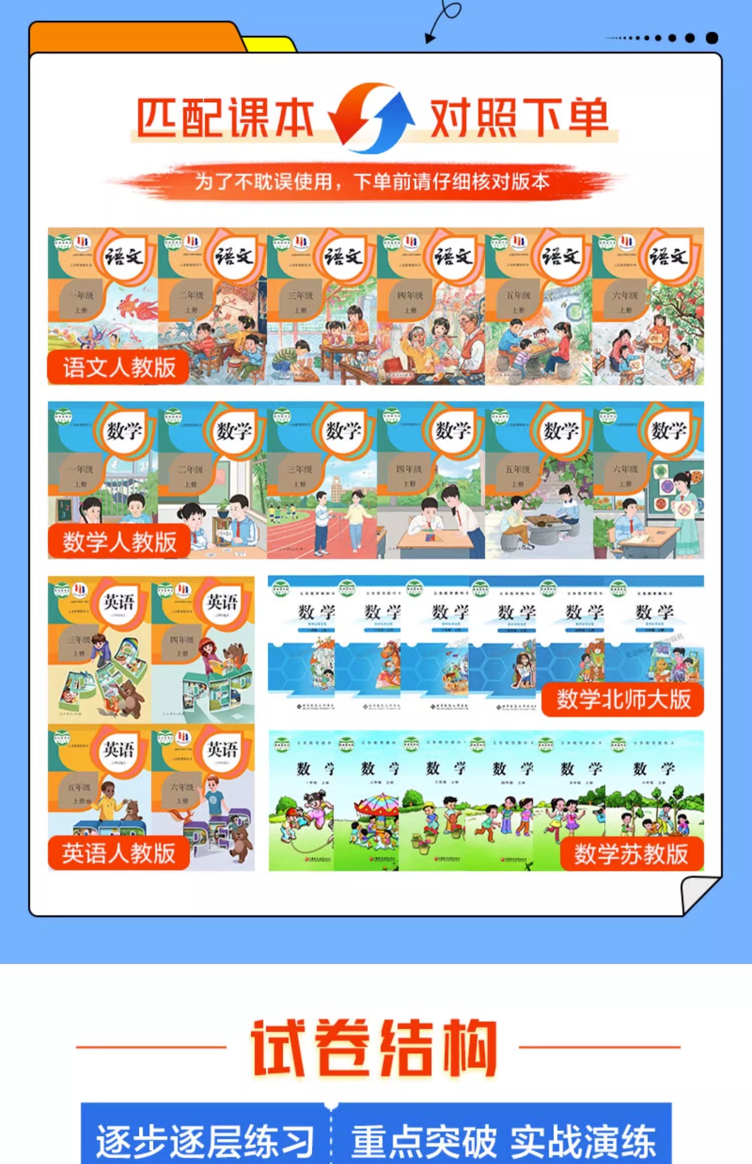 商品介绍:204新版53天天练全优卷同步试卷1-6年级