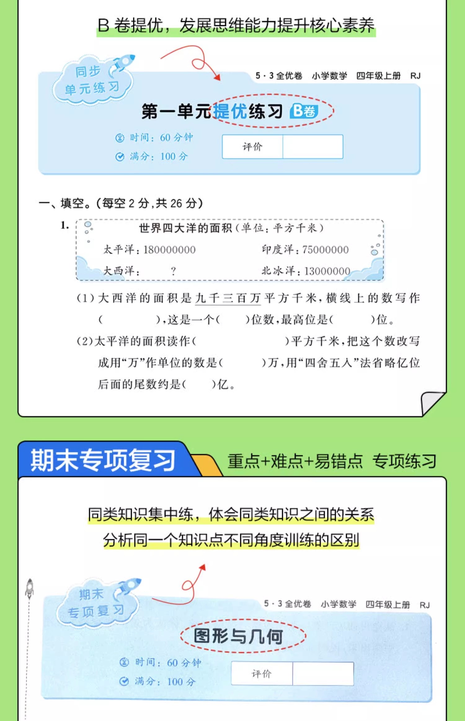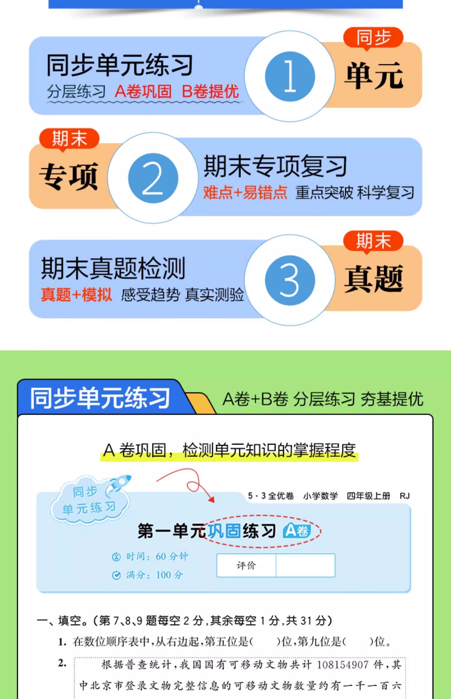 商品名称:2024秋新版上册53全优卷一二三四五六年级同步练习册试卷测试全套
