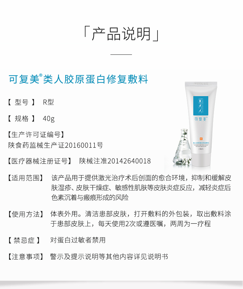 商品介绍:可复美重组胶原蛋白修复敷料R型40g乳液