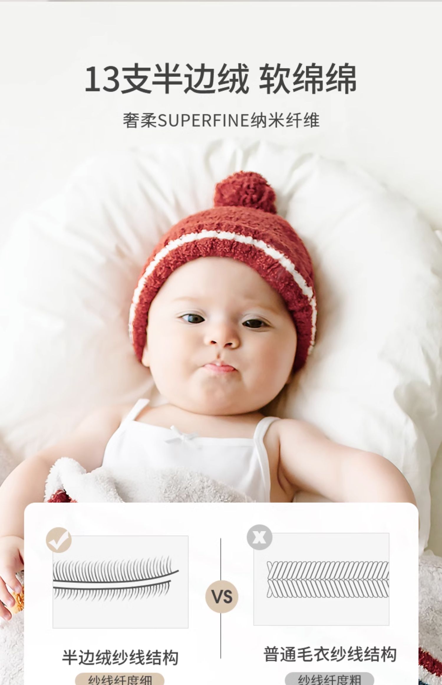 商品名称:嫚熙婴儿帽子秋冬季毛绒帽男女童保暖半边绒新生儿胎帽婴幼儿宝宝