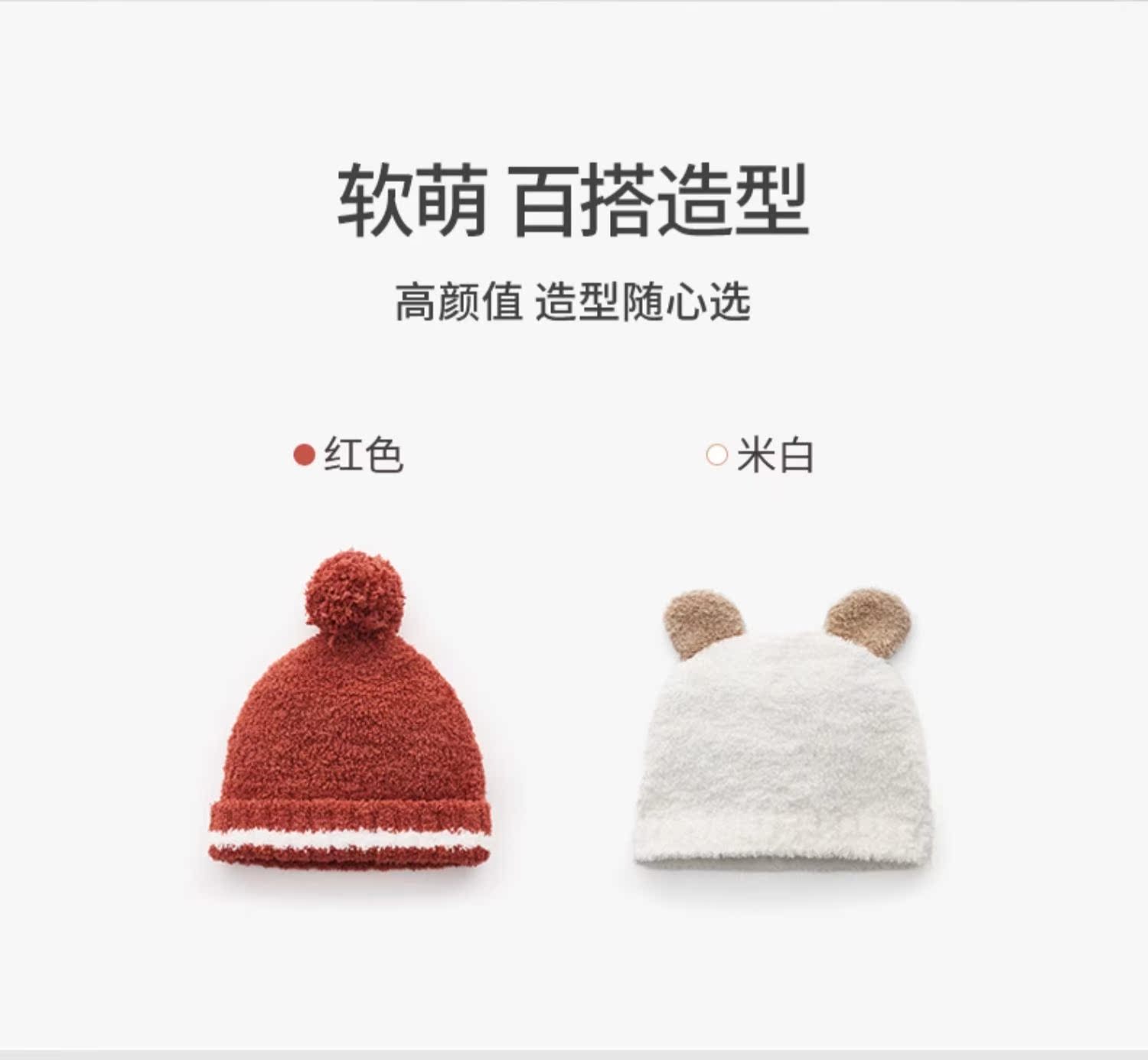 商品介绍:嫚熙婴儿帽子秋冬毛绒帽