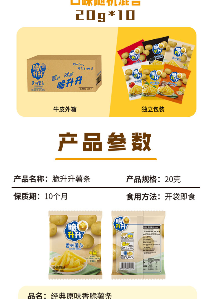 商品名称:【张若昀同款】脆升升多口味薯条非膨化薯片面包饼干休闲零食10包