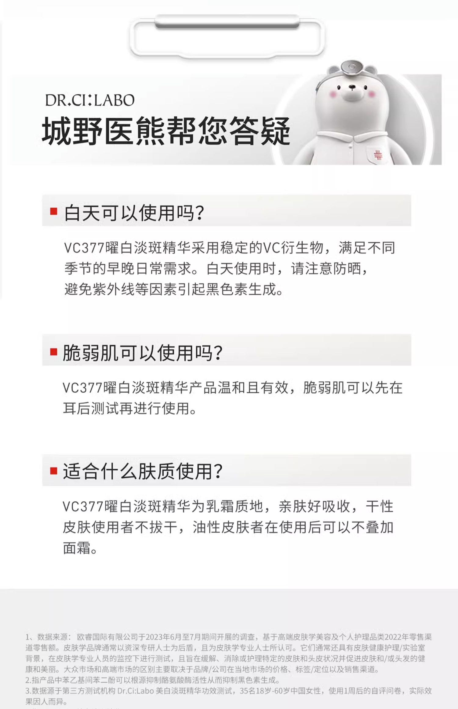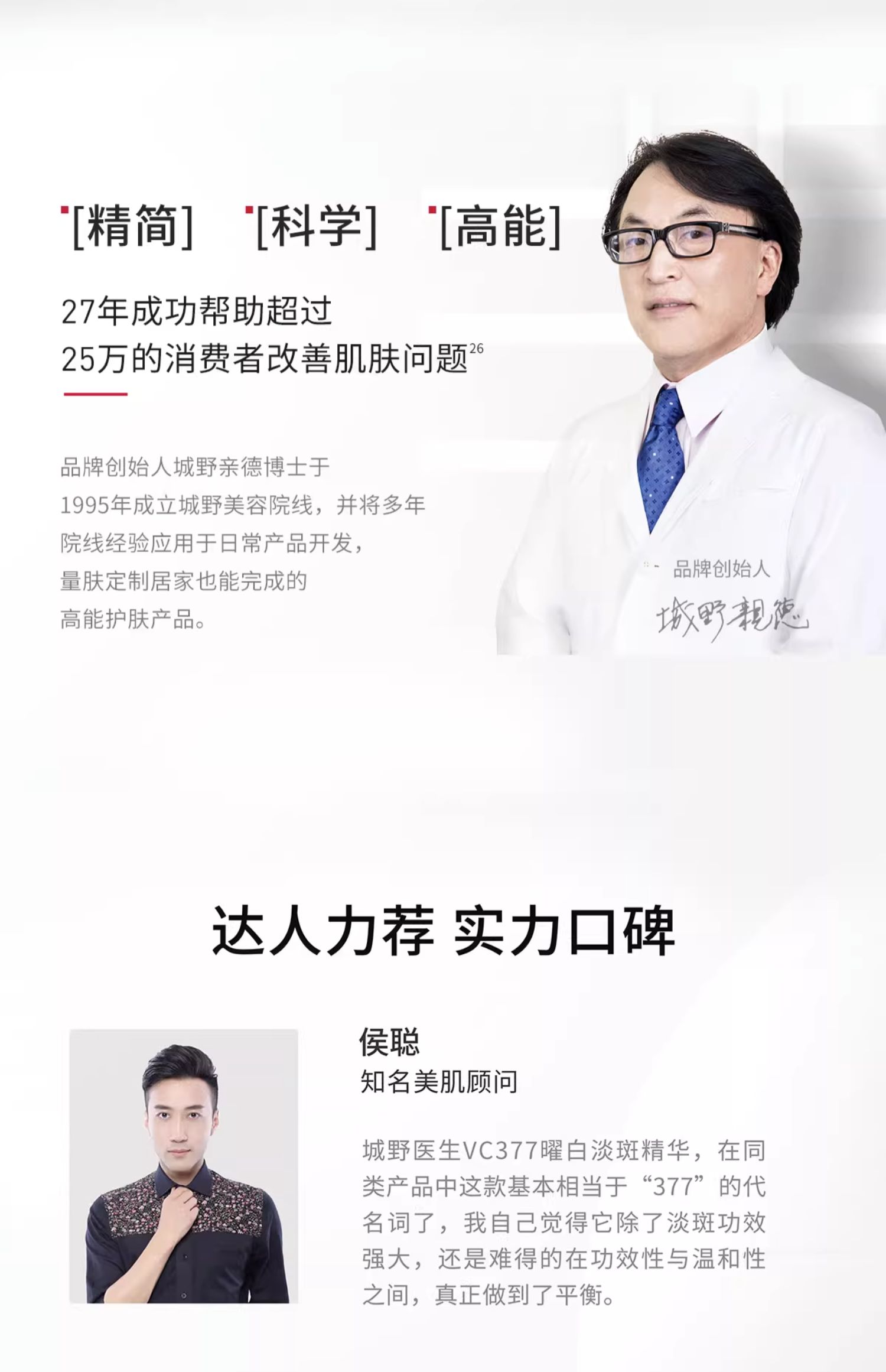 商品名称:城野医生VC377美白淡斑精华液去黄淡化痘印提亮祛斑面部精华