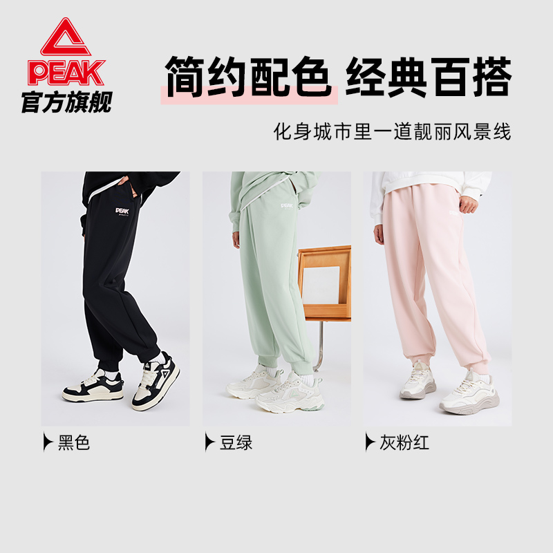 商品名称:匹克针织长裤女款秋冬跑步休闲百搭束脚收口梭织防风加绒运动裤