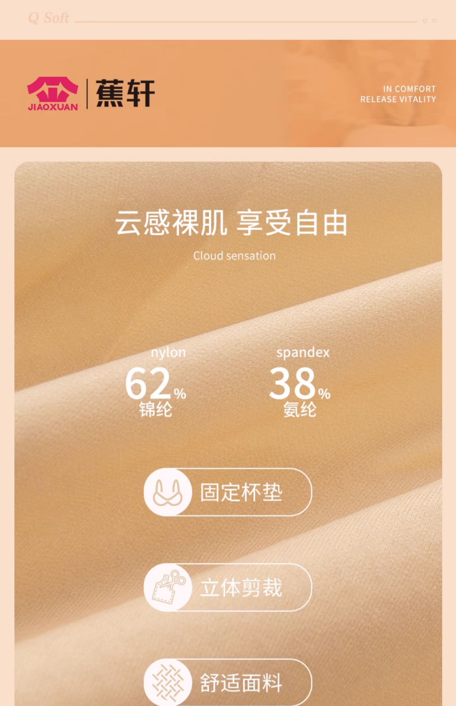 商品介绍:多色可选【蕉轩】无钢圈聚拢云朵无痕内衣