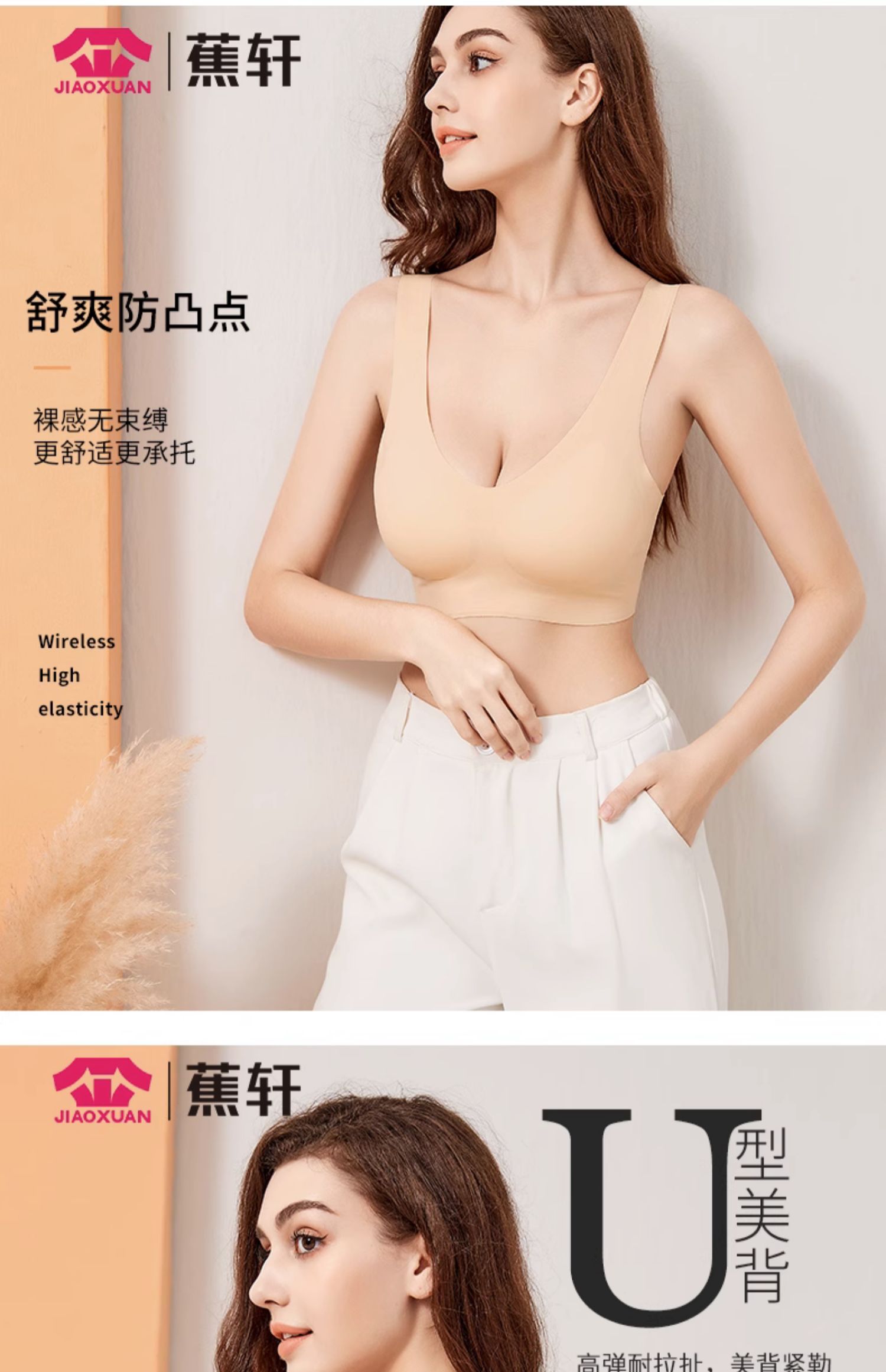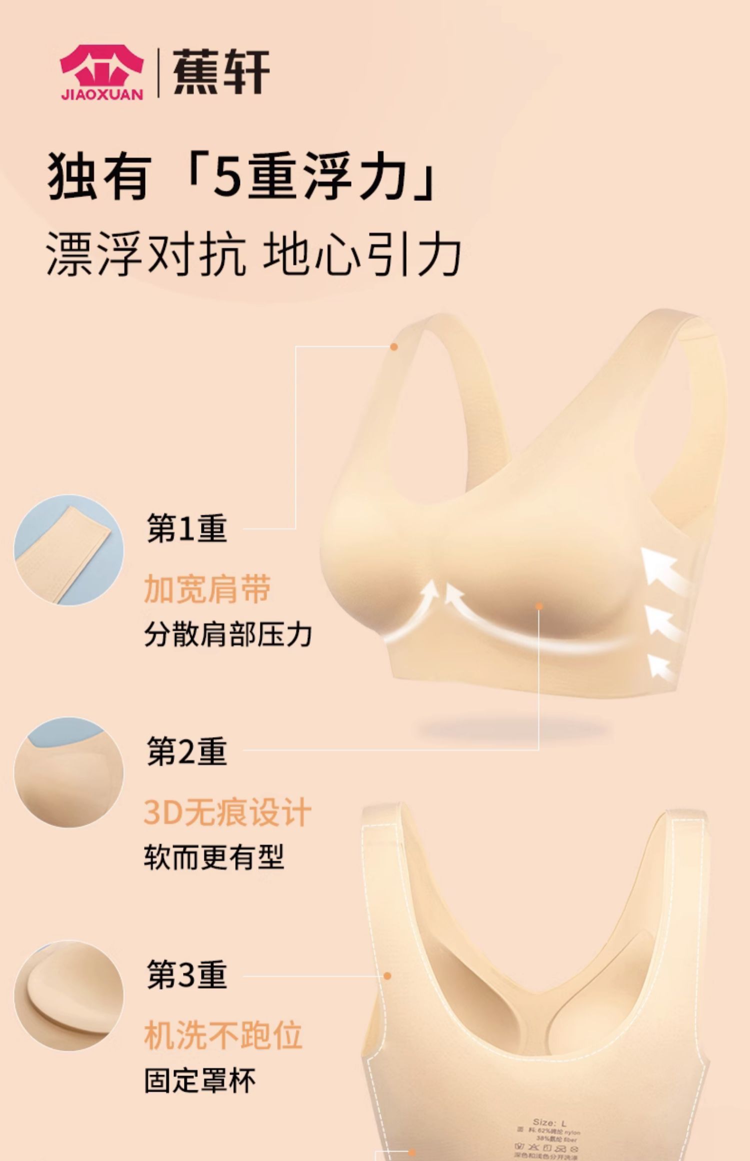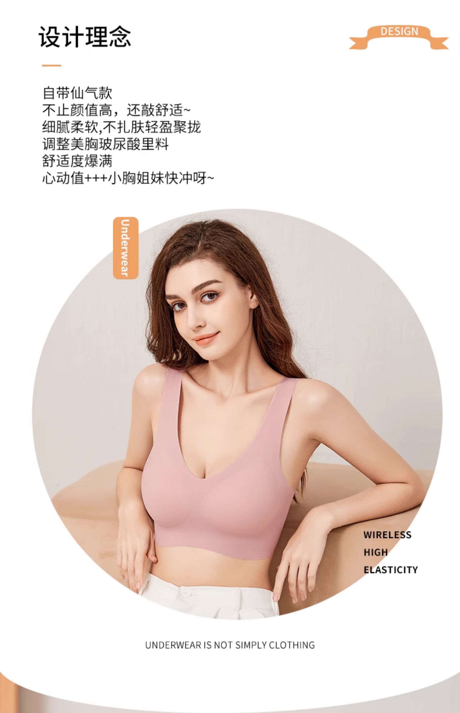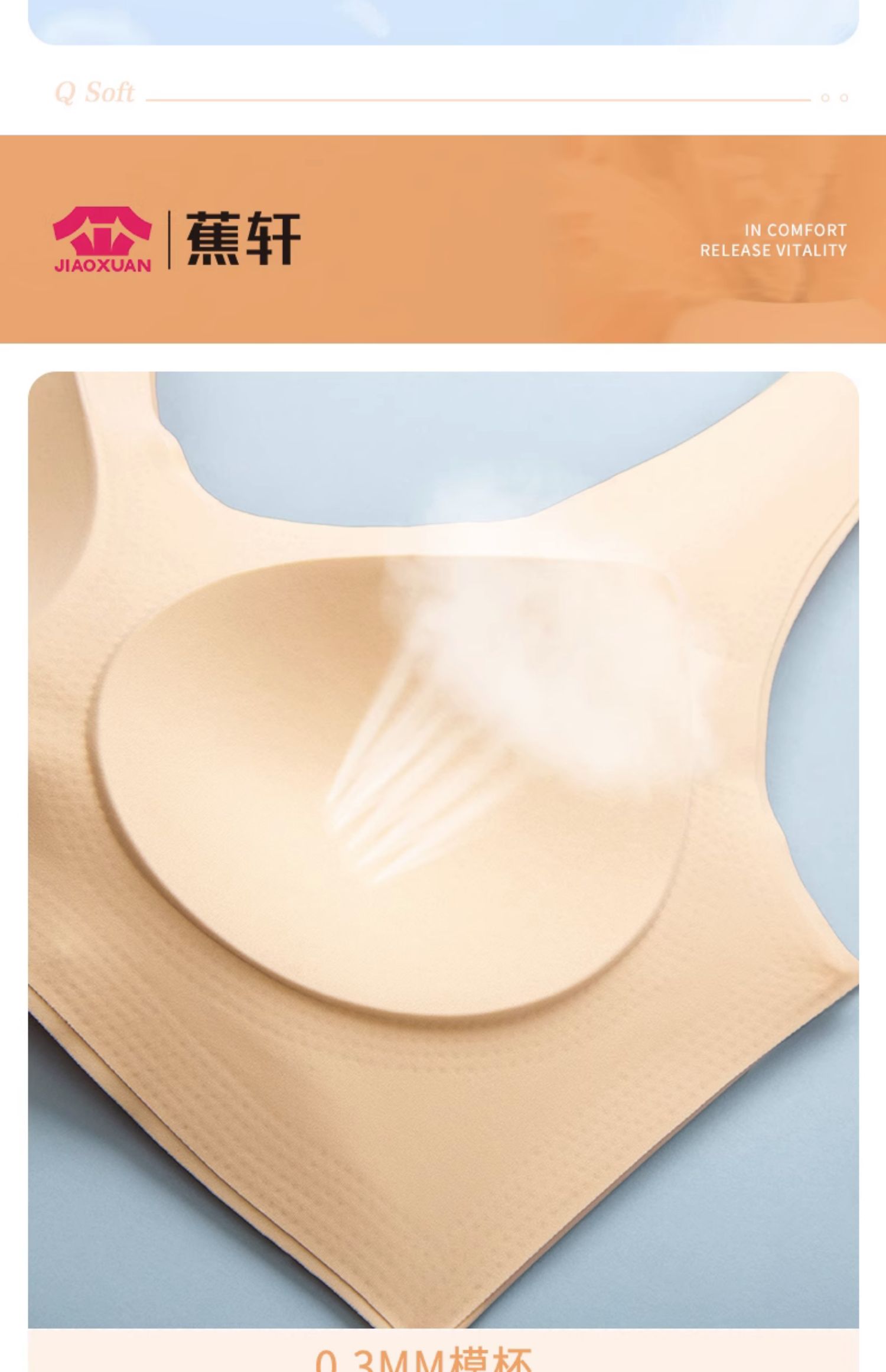 商品简介:【两件到手49.9】【蕉轩】自带仙气款,不止颜值高,还敲舒适~细腻柔软,不扎肤轻盈聚拢调整美胸玻尿酸里料,感受零触感的自由,好似云朵包裹的内衣神器,无痕裸感,点状粘合,抬手不跑杯【赠运费险】