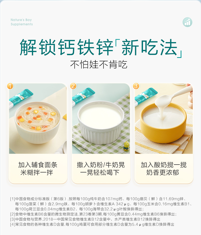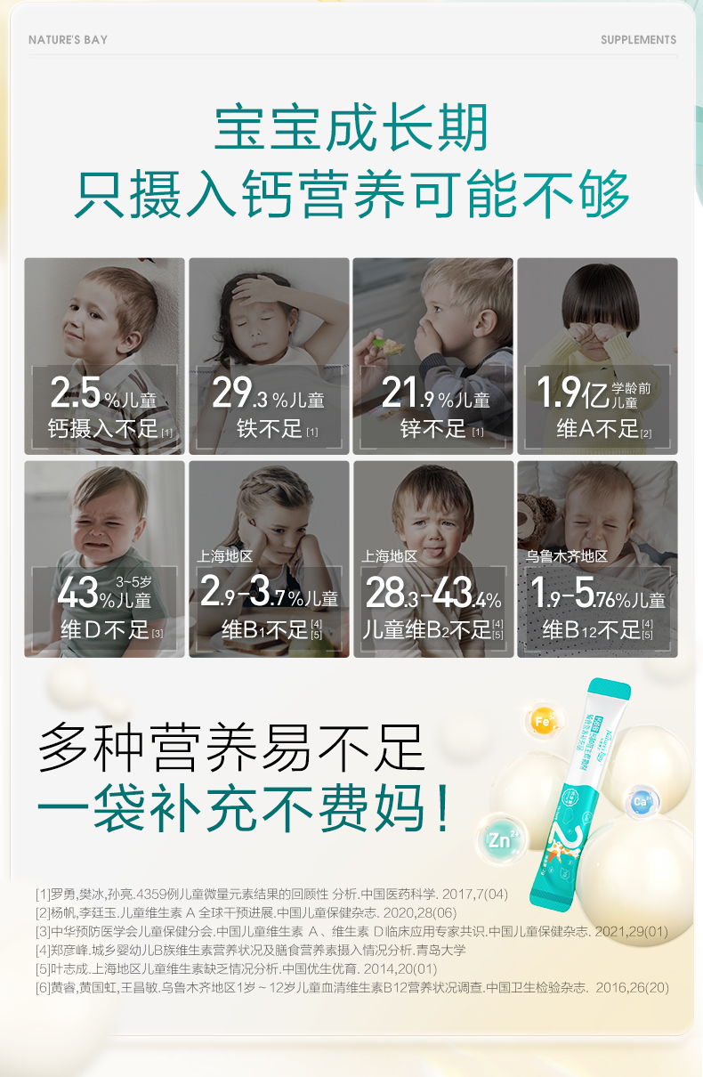 商品简介:【惊喜券叠凑单75元!】天然博士钙铁锌分阶营养包,营养分阶补,守护成长,10种营养,一次给补充,超赞~【赠运费险】
