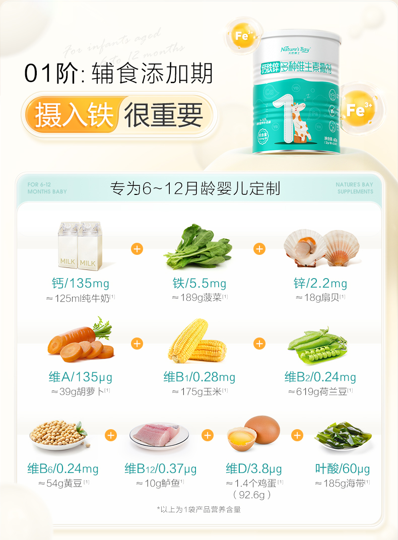 商品名称:[保价双11]天然博士科学分阶钙铁锌婴幼儿童宝宝营养多种维生素