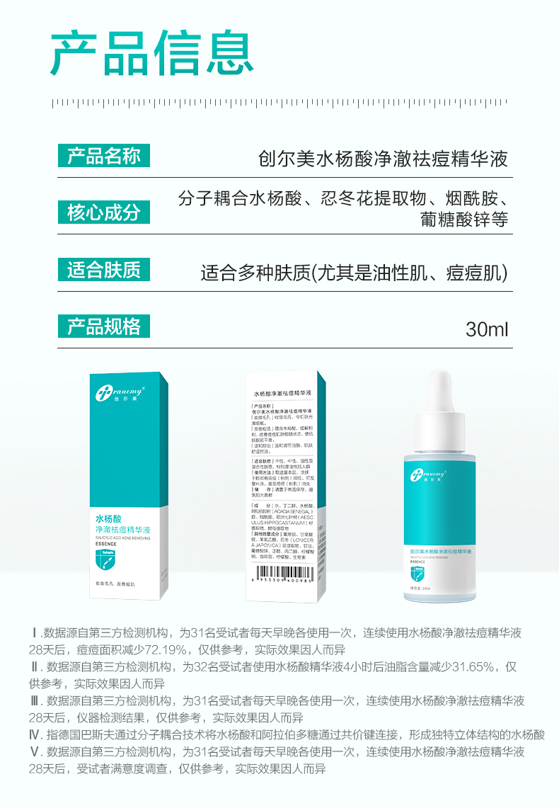 商品名称:创尔美水杨酸精华液祛痘痘去闭口黑头粉刺 控油收缩毛孔烟酰胺