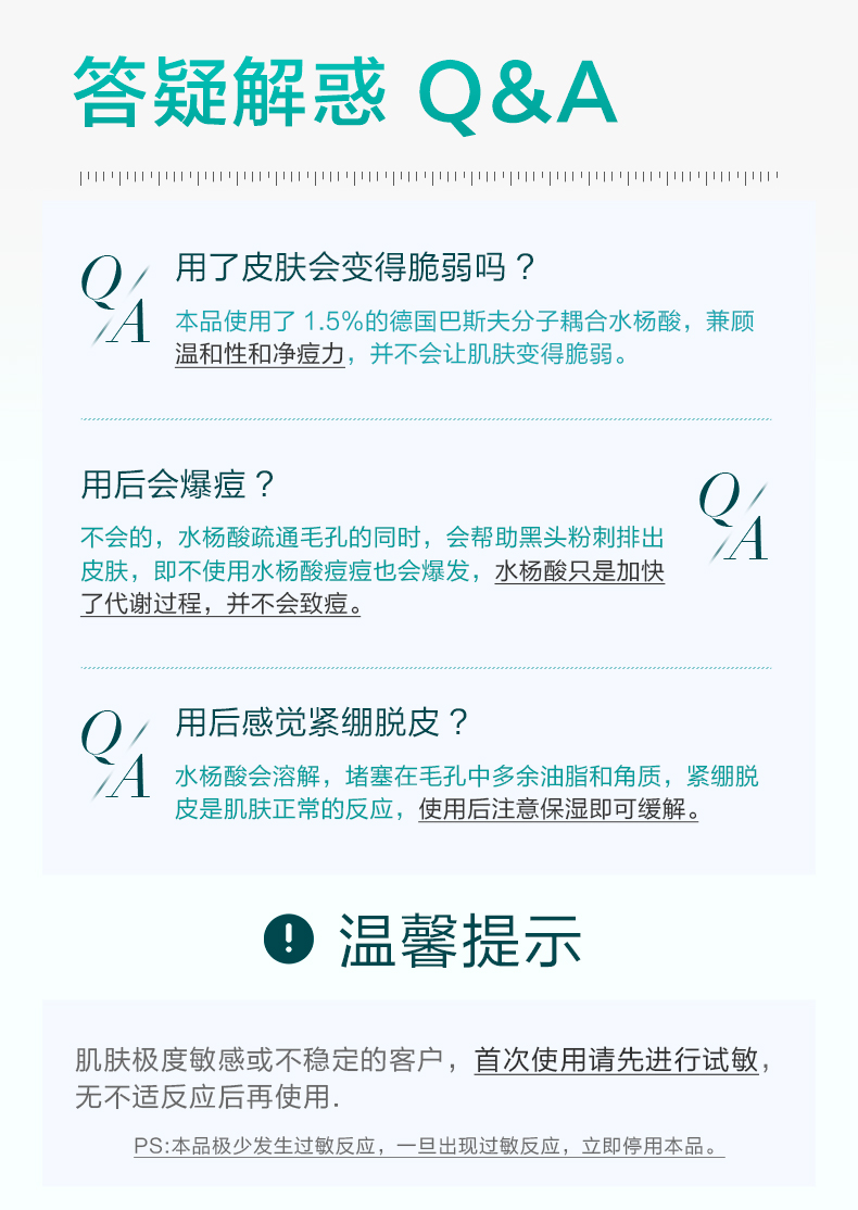 商品简介:买一送一!水杨酸祛痘精华,深入毛孔平衡油脂,缓解痘痘闭口,减少黑头粉刺,收敛毛孔。从肌底调养,更温和养肤,还你天然无暇美肌~