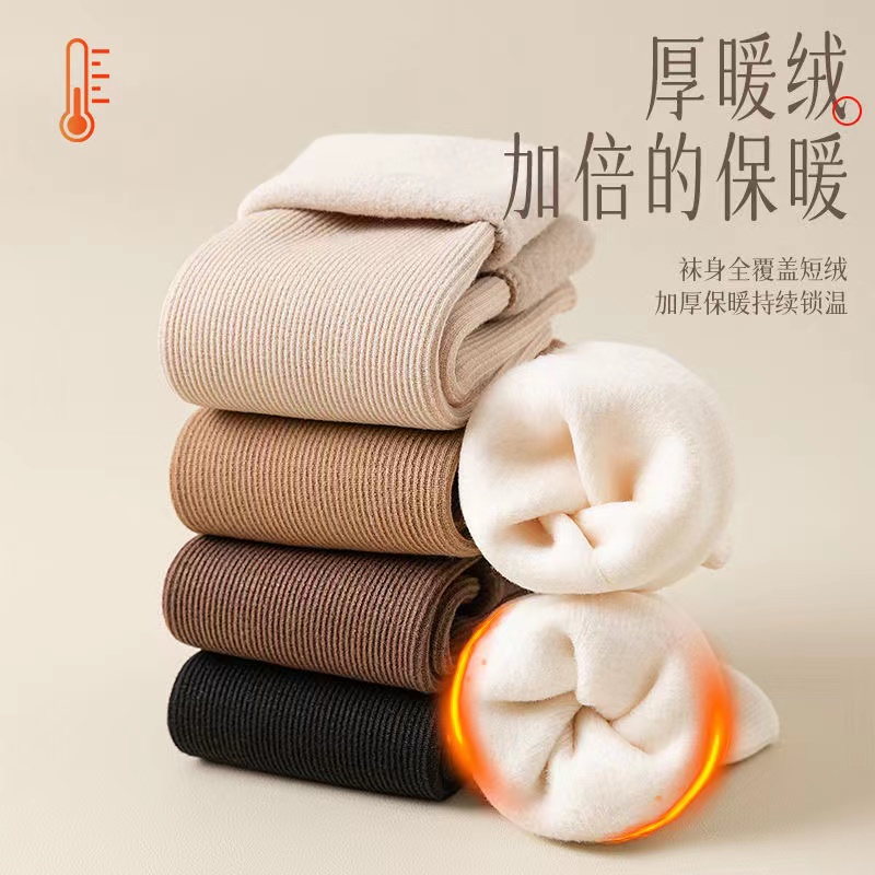 商品介绍:秋冬女款季加绒加厚中筒雪地袜月子袜