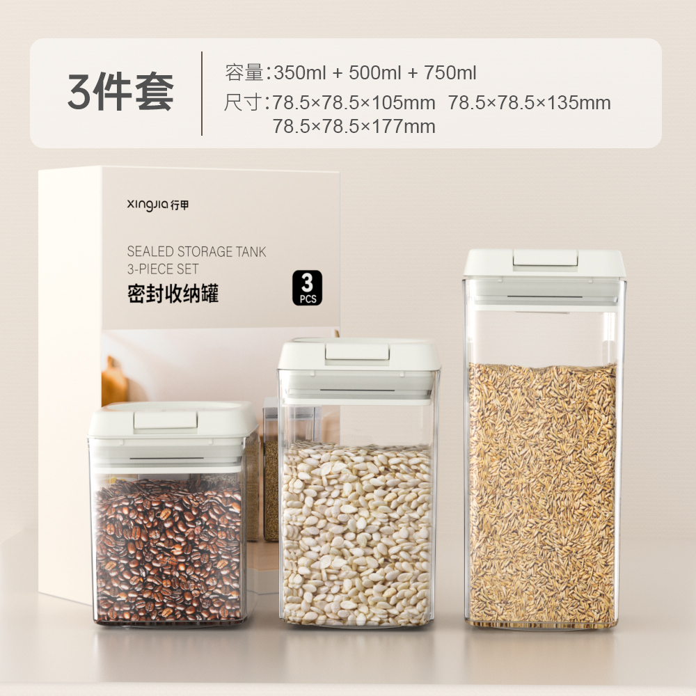 商品介绍:行甲五谷杂粮密封罐收纳盒3件套