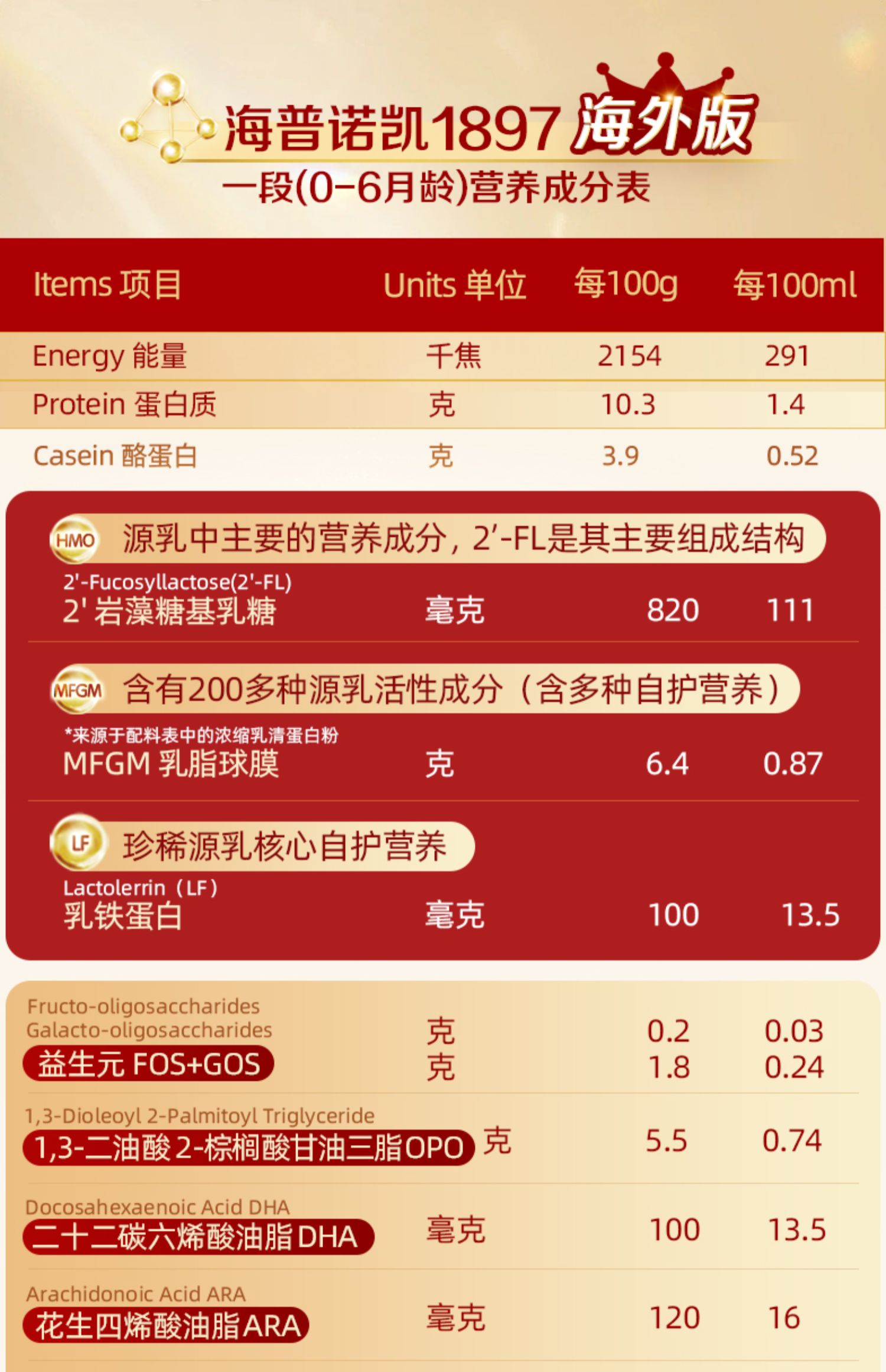 商品名称:海普诺凯1897海外未来版进口奶粉婴儿1段新生0-6月正品官方旗舰店