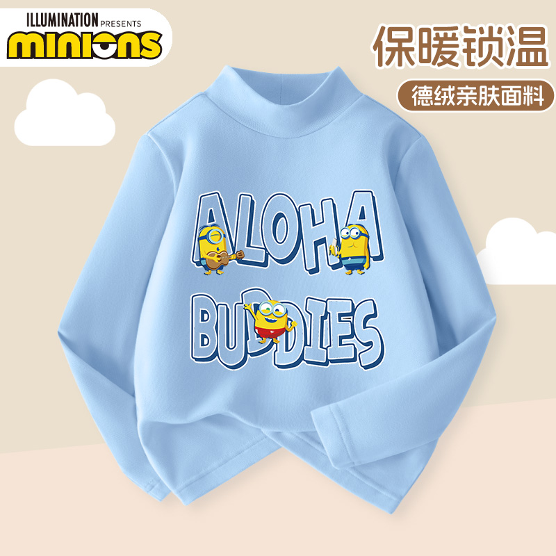 商品介绍:19.9/件!小黄人半高领德绒打底衫保暖上衣