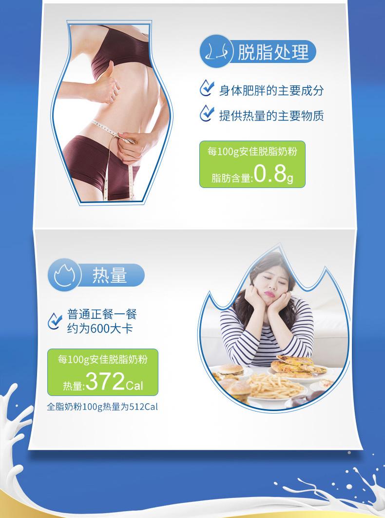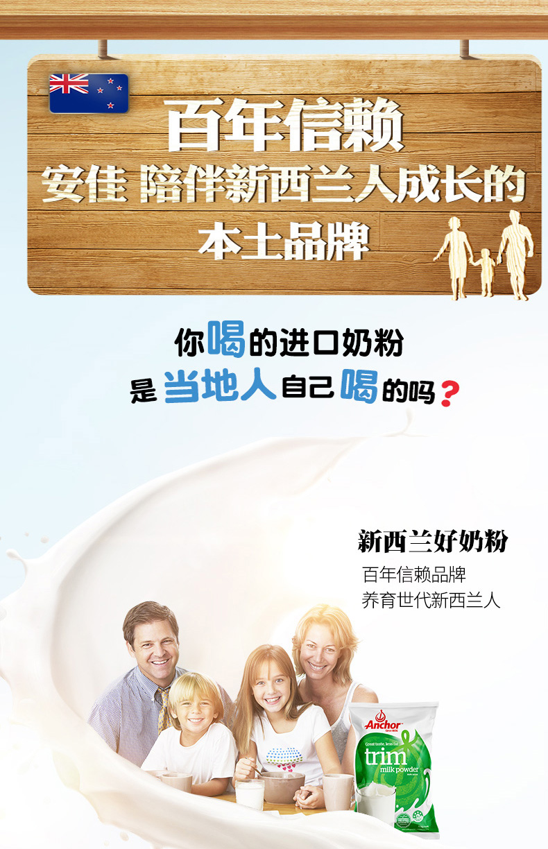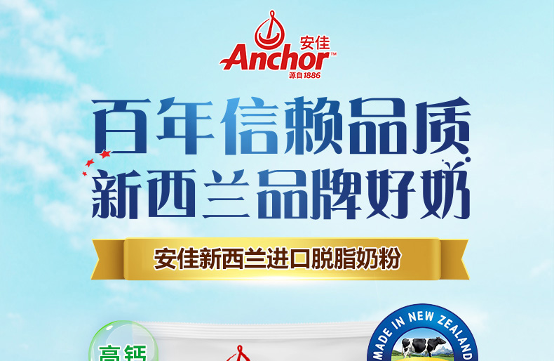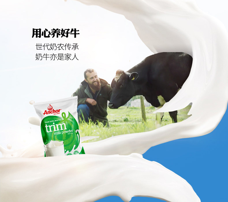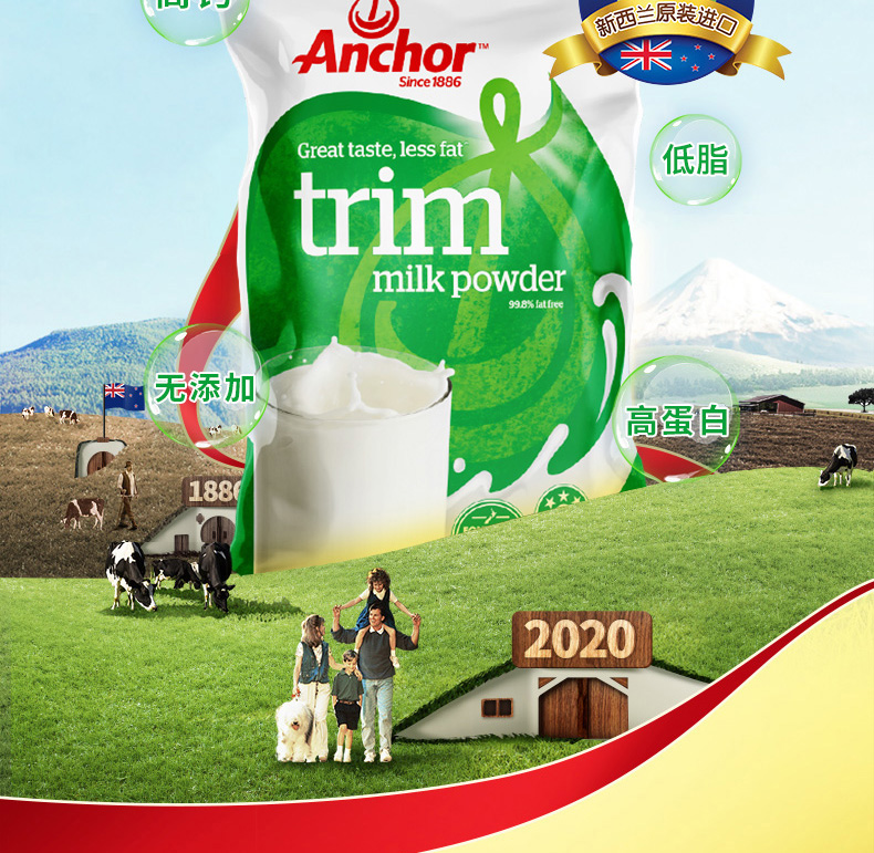 商品介绍:2袋!安佳进口脱脂成人奶粉1kg*2