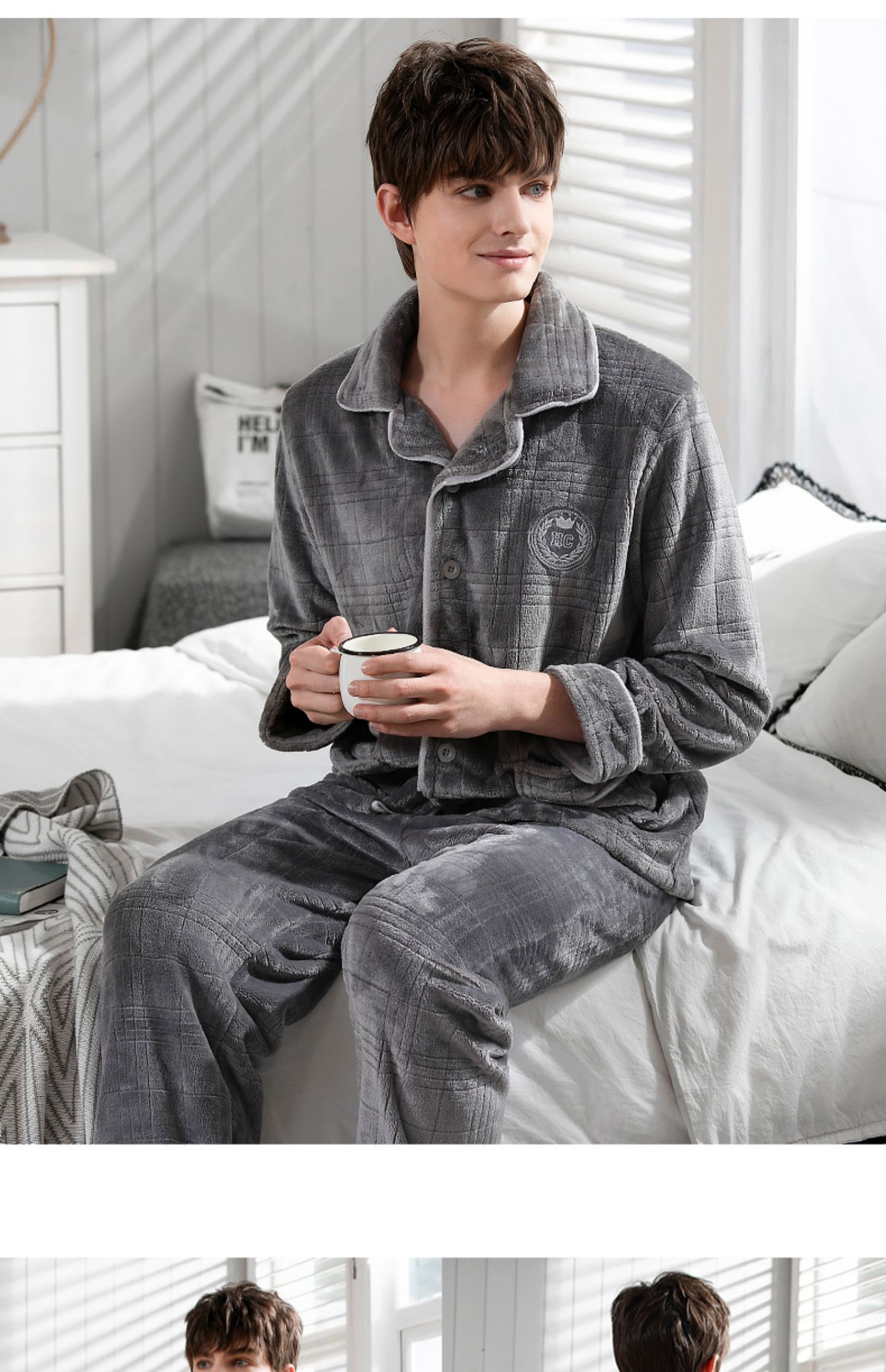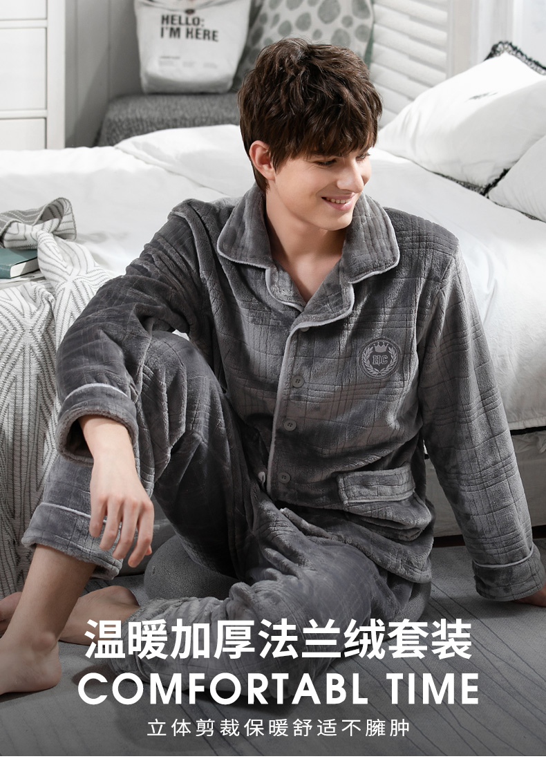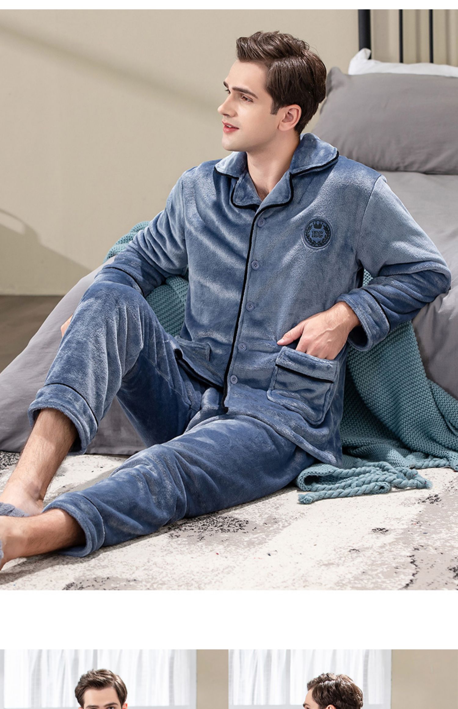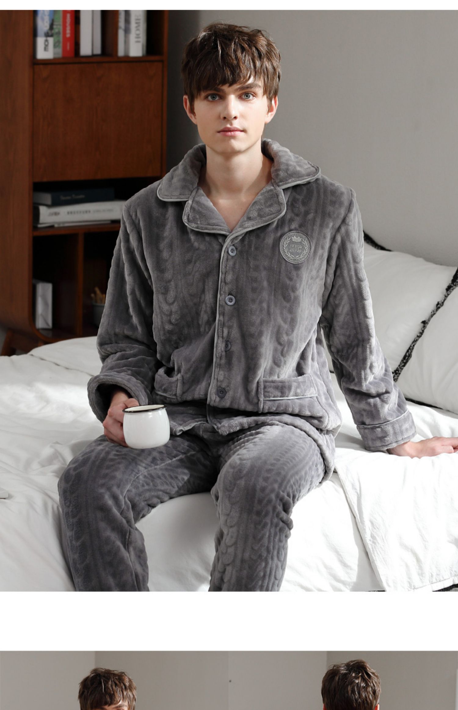 商品名称:冬季男款珊瑚绒睡衣男秋冬款男士法兰绒加厚加绒大码可外穿家居服