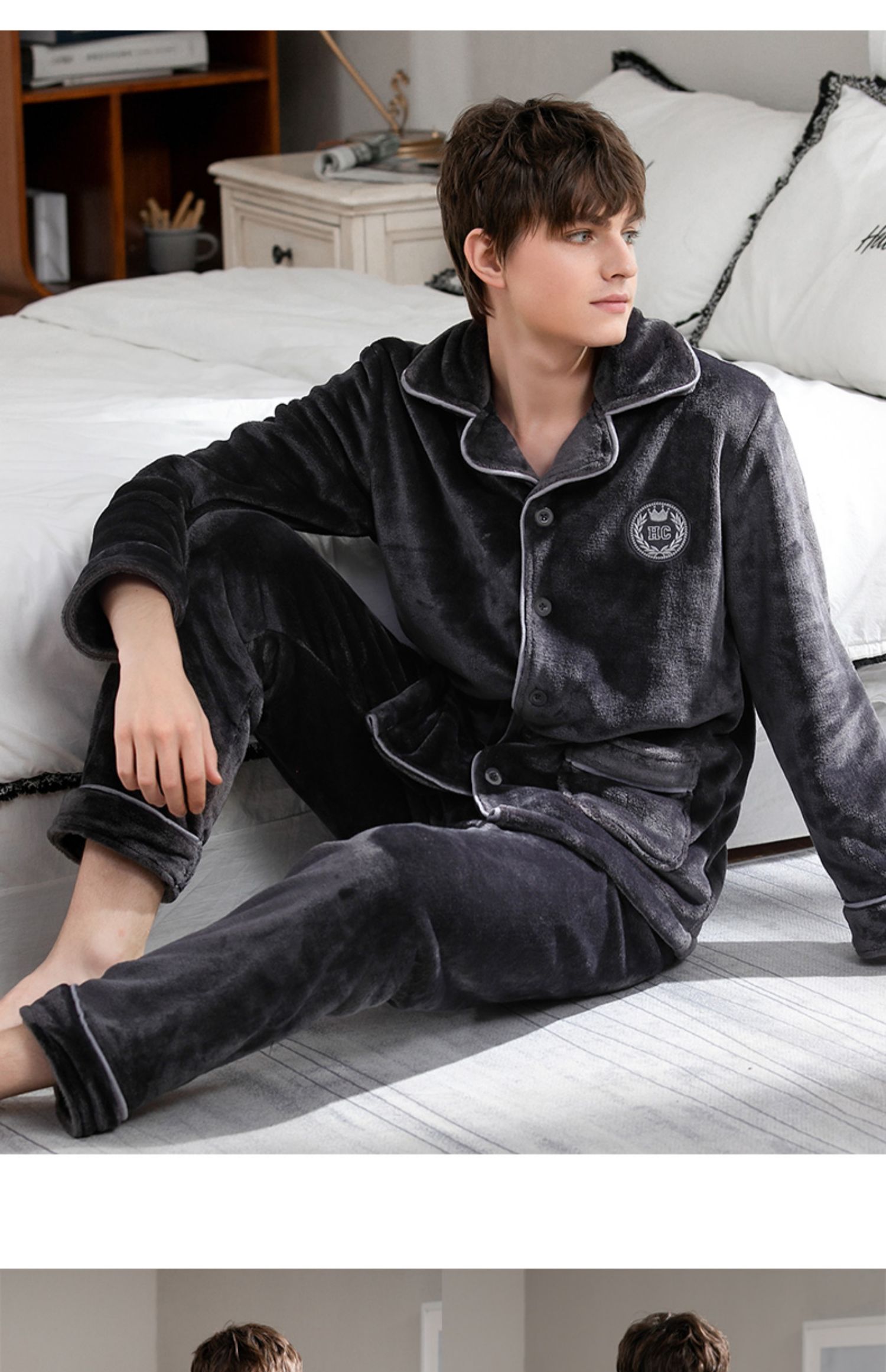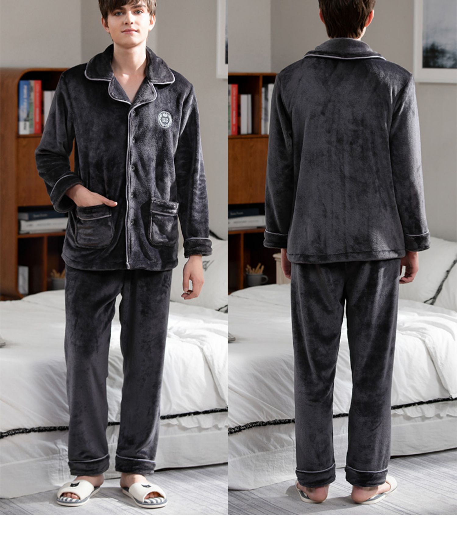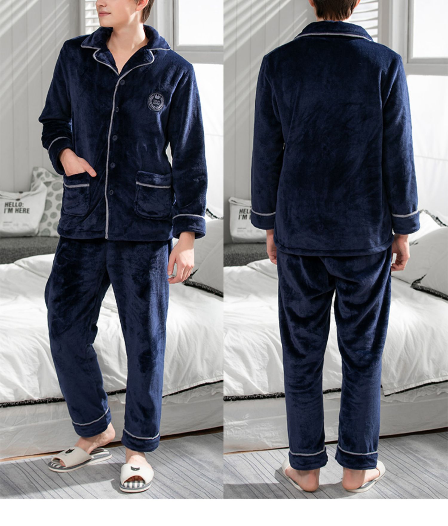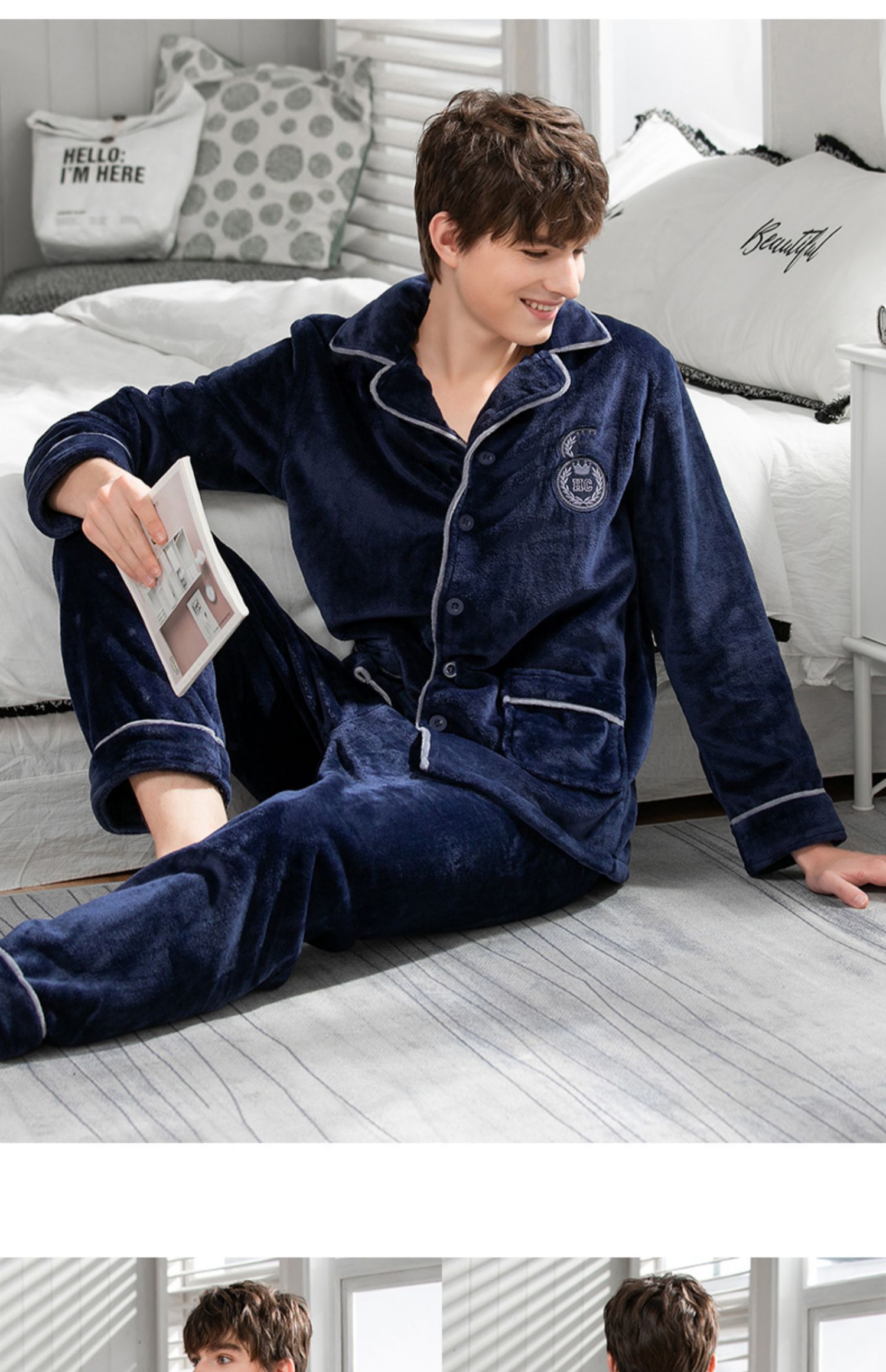 商品名称:冬季男款珊瑚绒睡衣男秋冬款男士法兰绒加厚加绒大码可外穿家居服