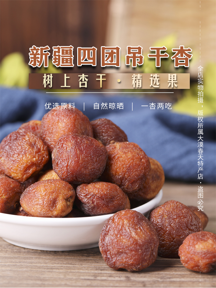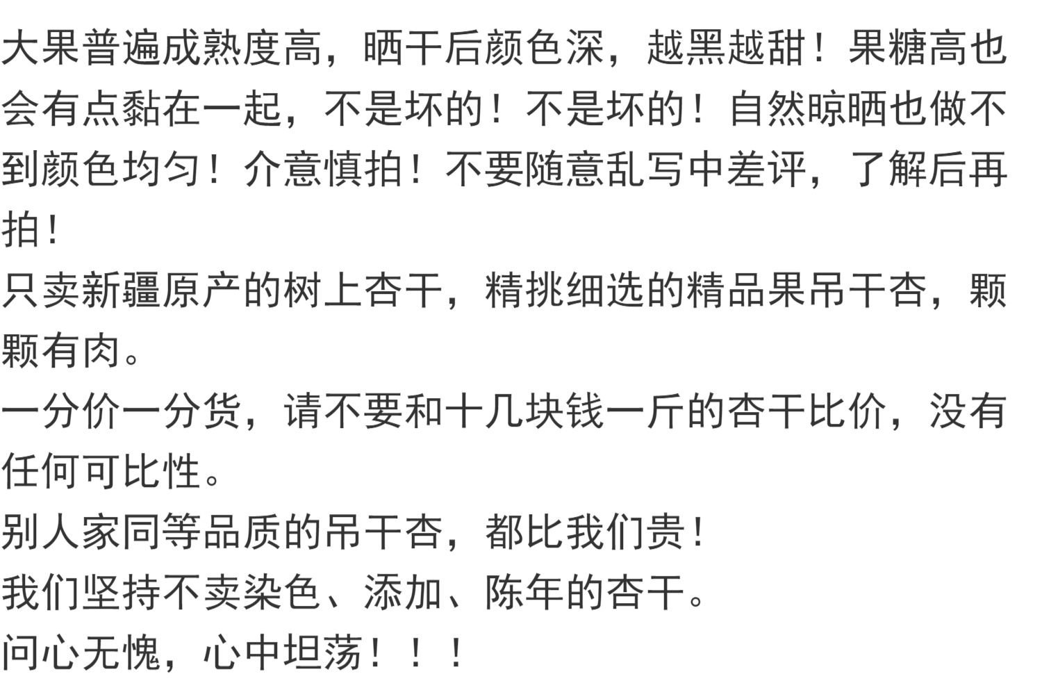商品名称:新疆特产树上杏干四团吊杏干吊干杏小红杏精选果杏仁500g包邮