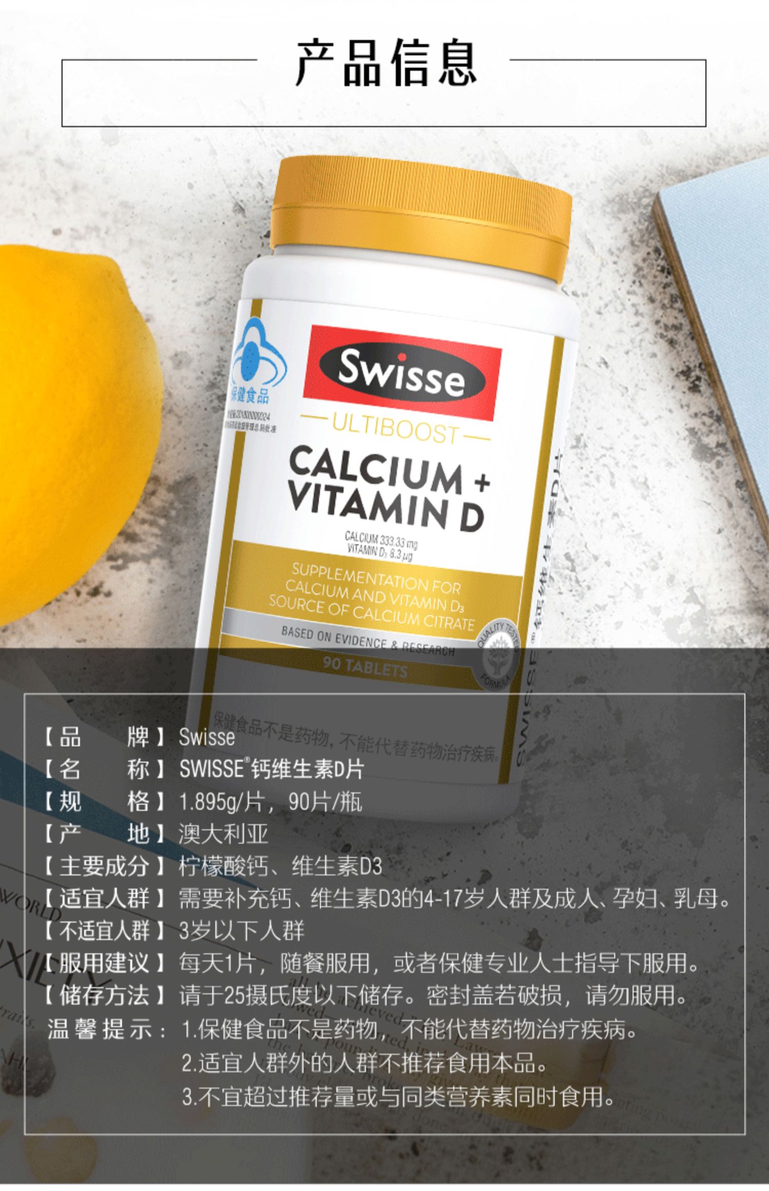商品介绍:swisse钙维生素D片90片