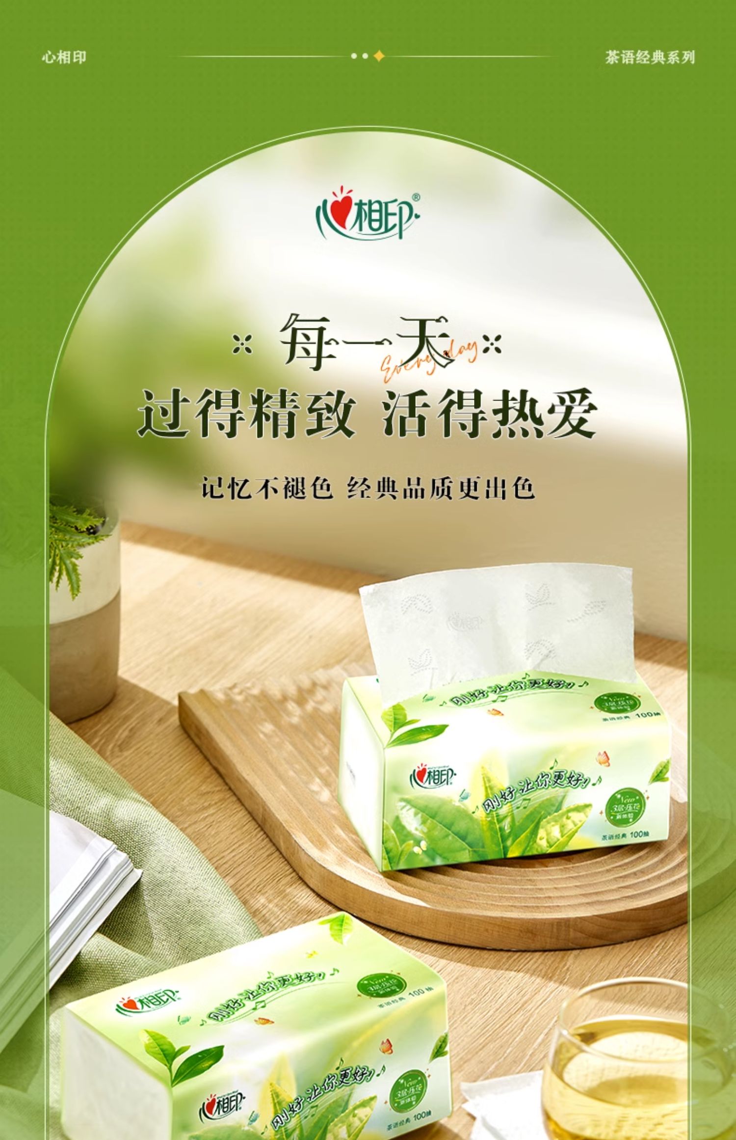 商品简介:百亿补贴29.9!【心相印旗舰店】茶语私享系列,3层100抽24包量贩家庭装!韧性十足柔软亲肤,湿水不易破,三层压花表层不易分层,茶叶实力绽放,严格去菌把控,给家人一份安心!