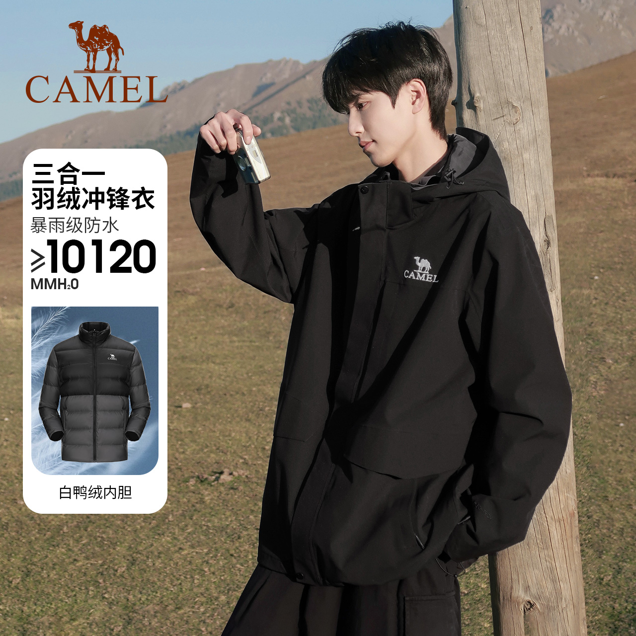 商品介绍:骆驼官旗•羽绒三合一冲锋衣