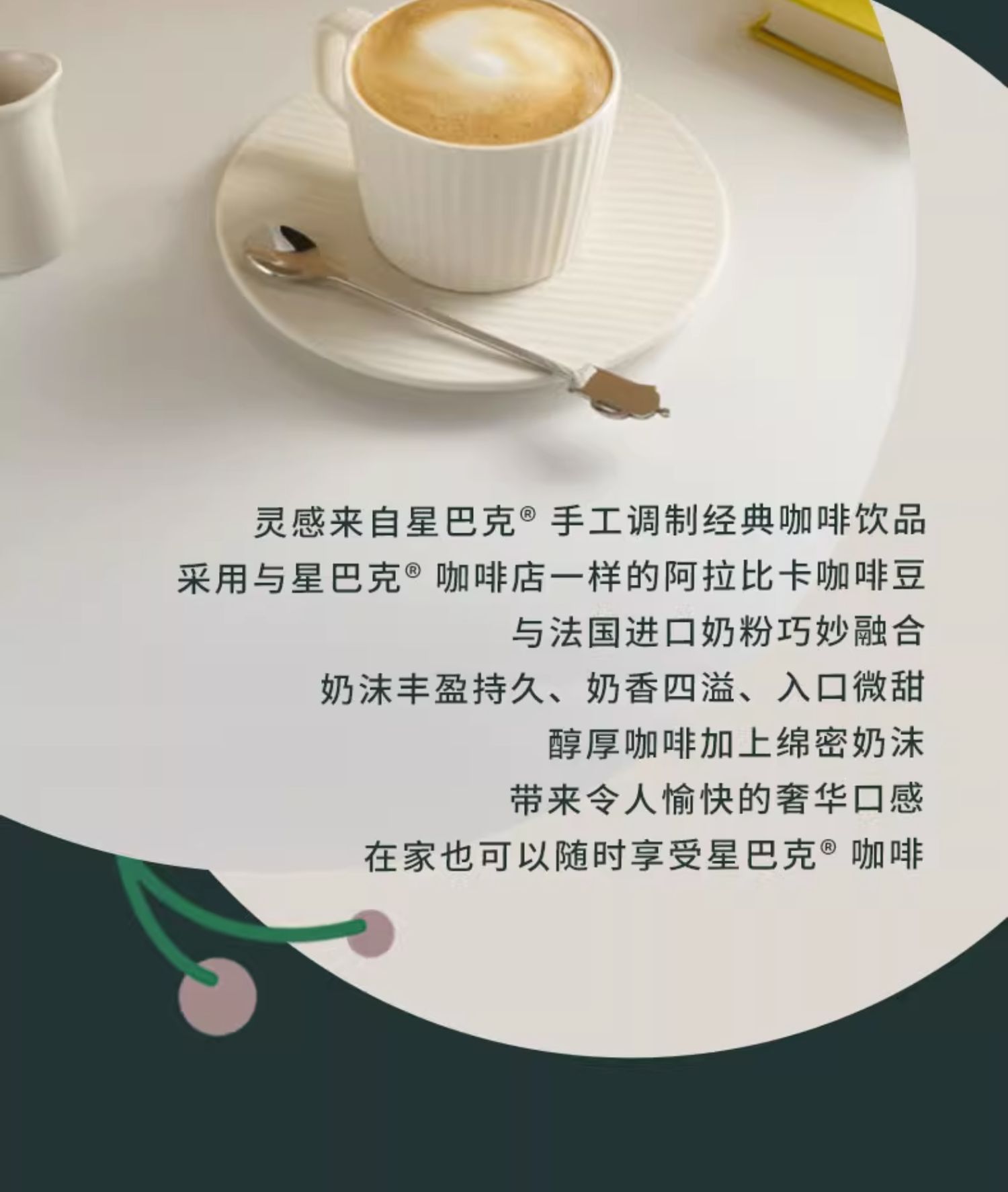商品简介:【满1件8.36折,凑单到手50.9】采用与星巴克咖啡店一样的阿拉比卡咖啡豆,与源自法国的奶粉巧妙融合,奶沫丰盈、持久,奶香四溢,入口微甜,带来令人愉悦的奢华口感。