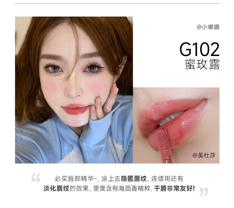 商品简介:【叠加300-50满减凑单92到手两支!会员买2赠毛绒抓夹+轻吻唇釉1g】护唇,妆养合一,有色唇部精华,蜜光嘟透感,饱满不卡纹,双重精粹润养!!快买吧!!